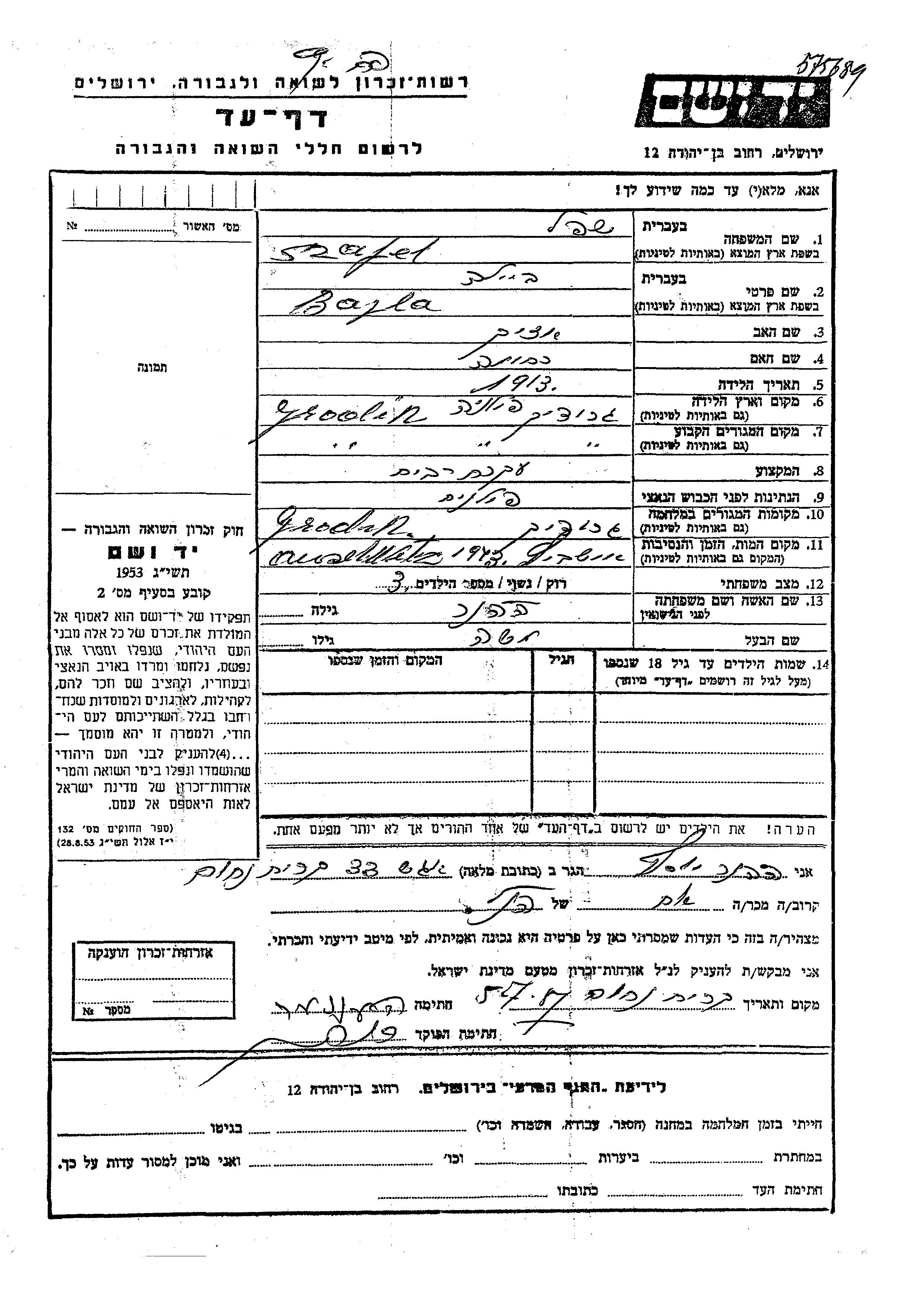 Bajla Szafel, geb. Hener wurde im Jahr 1913 in Gródek, Polen geboren. Sie war die Tochter von Yitzkhak und Rakhima. Sie war Hausfrau und mit Moshe Verheiratet. Vor dem Zweiten Weltkrieg lebte sie in Gródek, Polen. Während des Krieges war sie in Gródek, Polen.