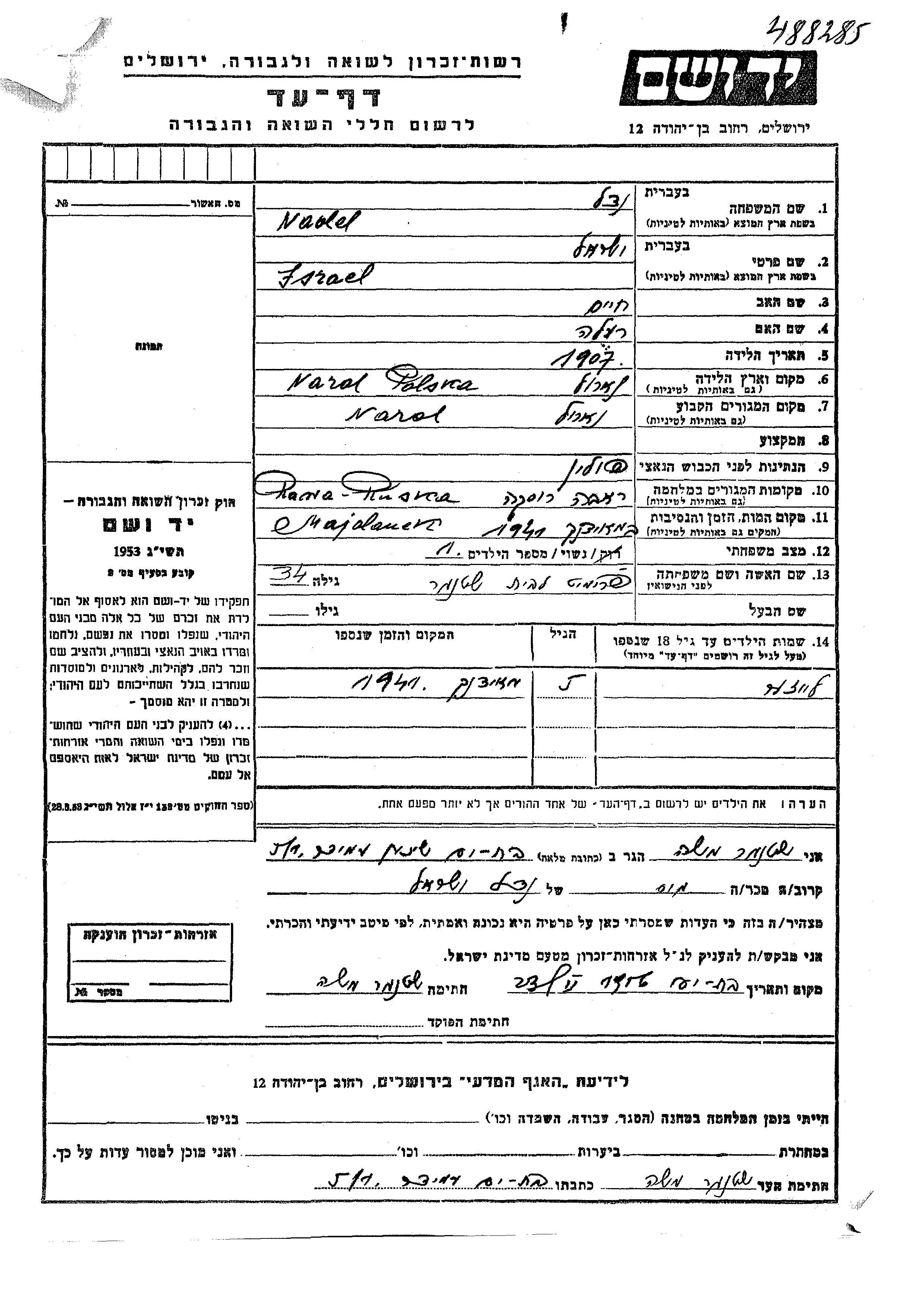 Nadel Eliezer Narol, Polen Gedenkblatt