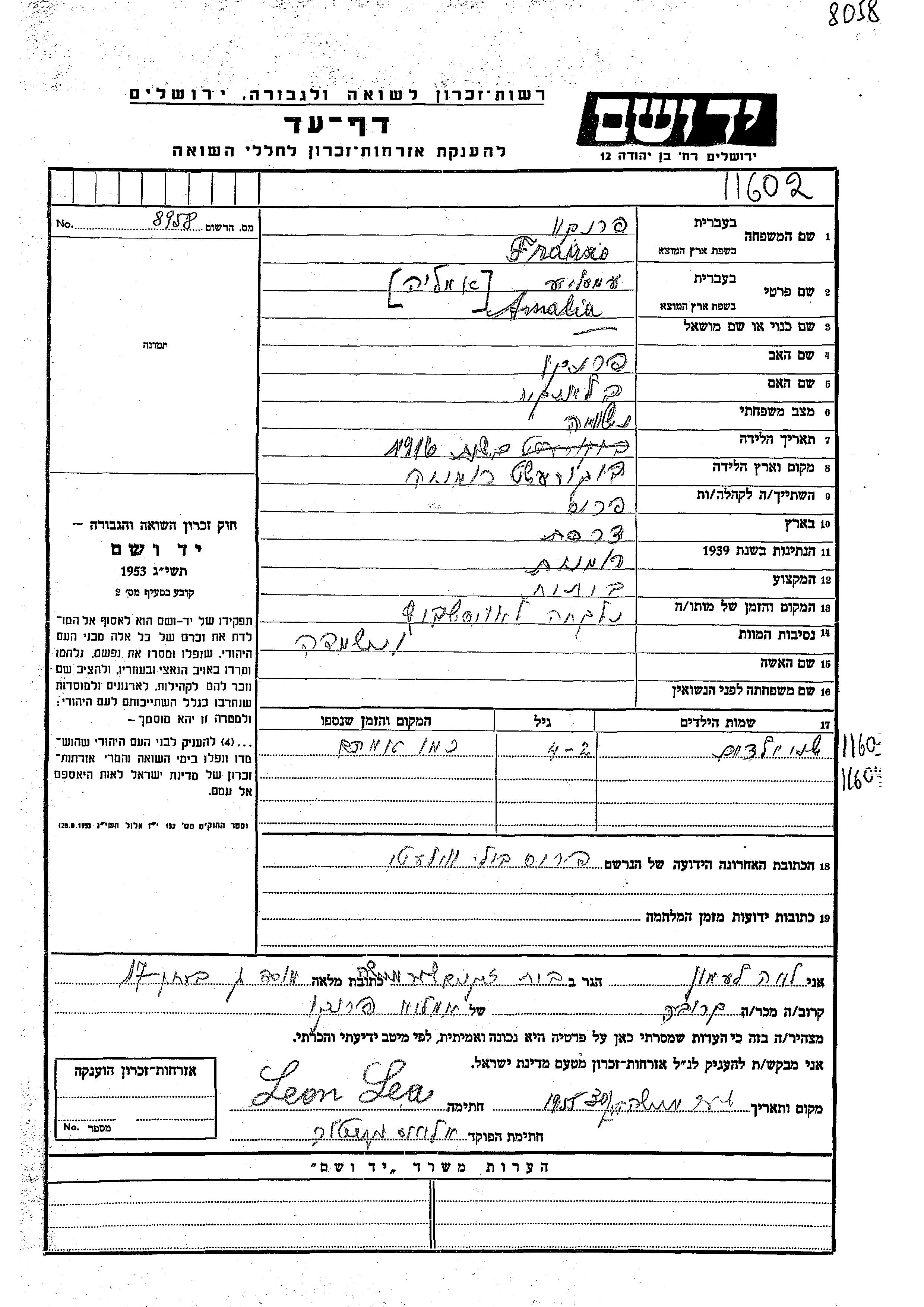 Amalia wurde in der Schoah ermordet. Todesort: Auschwitz, Polen.