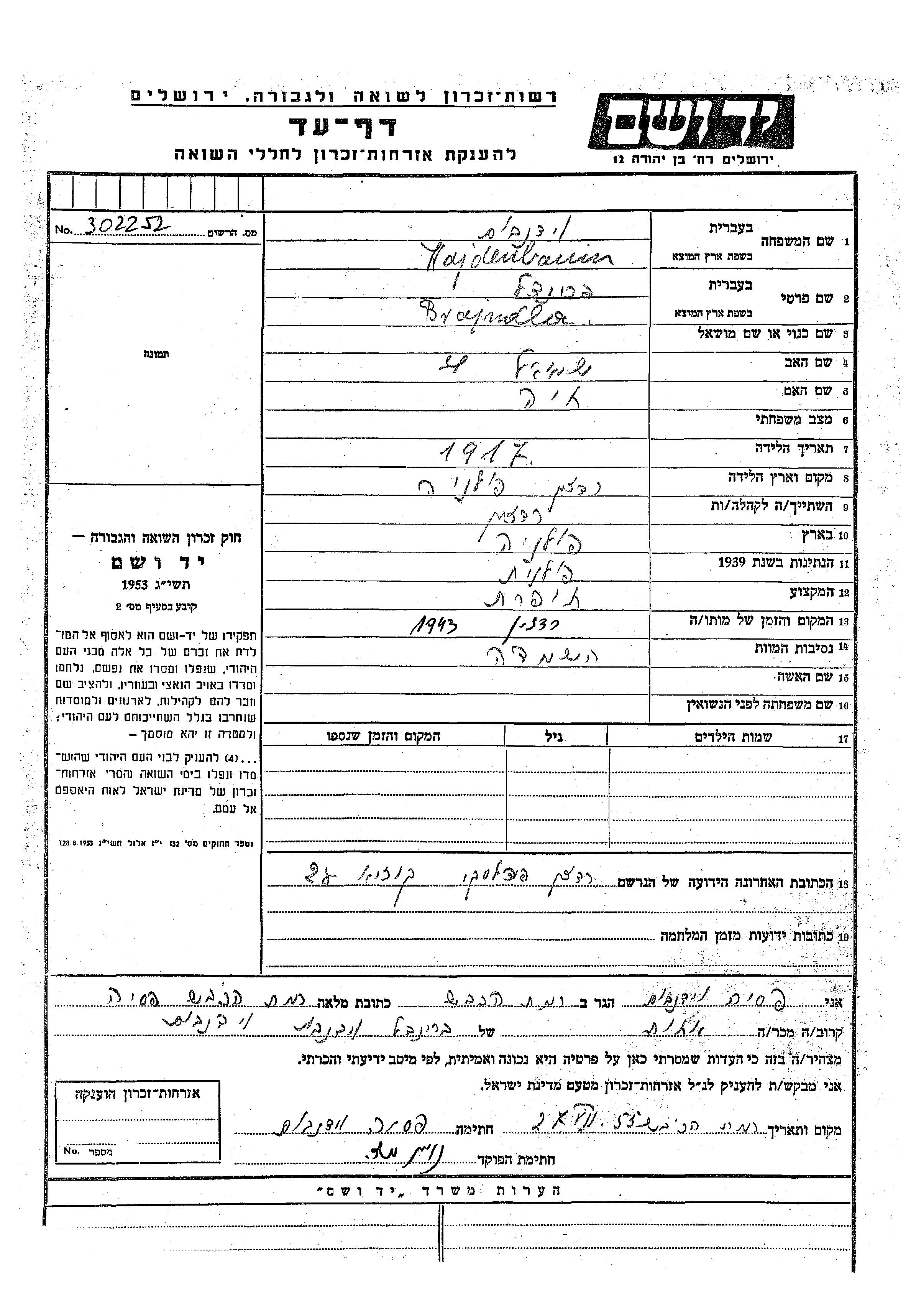 Juden wurden in der Schoah auf verschiedenste Weisen ermordet, unter anderem: Vergasen, Erschiessen, lebendig verbrannt werden, lebendig begraben werden, Tod durch Erschöpfung durch Zwangsarbeit, Epidemien, mangels jeder hygienischer Bedingung oder dem Fehlen medizinischer Versorgung. Manche Juden nahmen sich das Leben, um der Festnahme und weiterer Verfolgung zu entgehen oder ihr hoffnungsloses, nicht nachlassendes Leiden zu beenden.