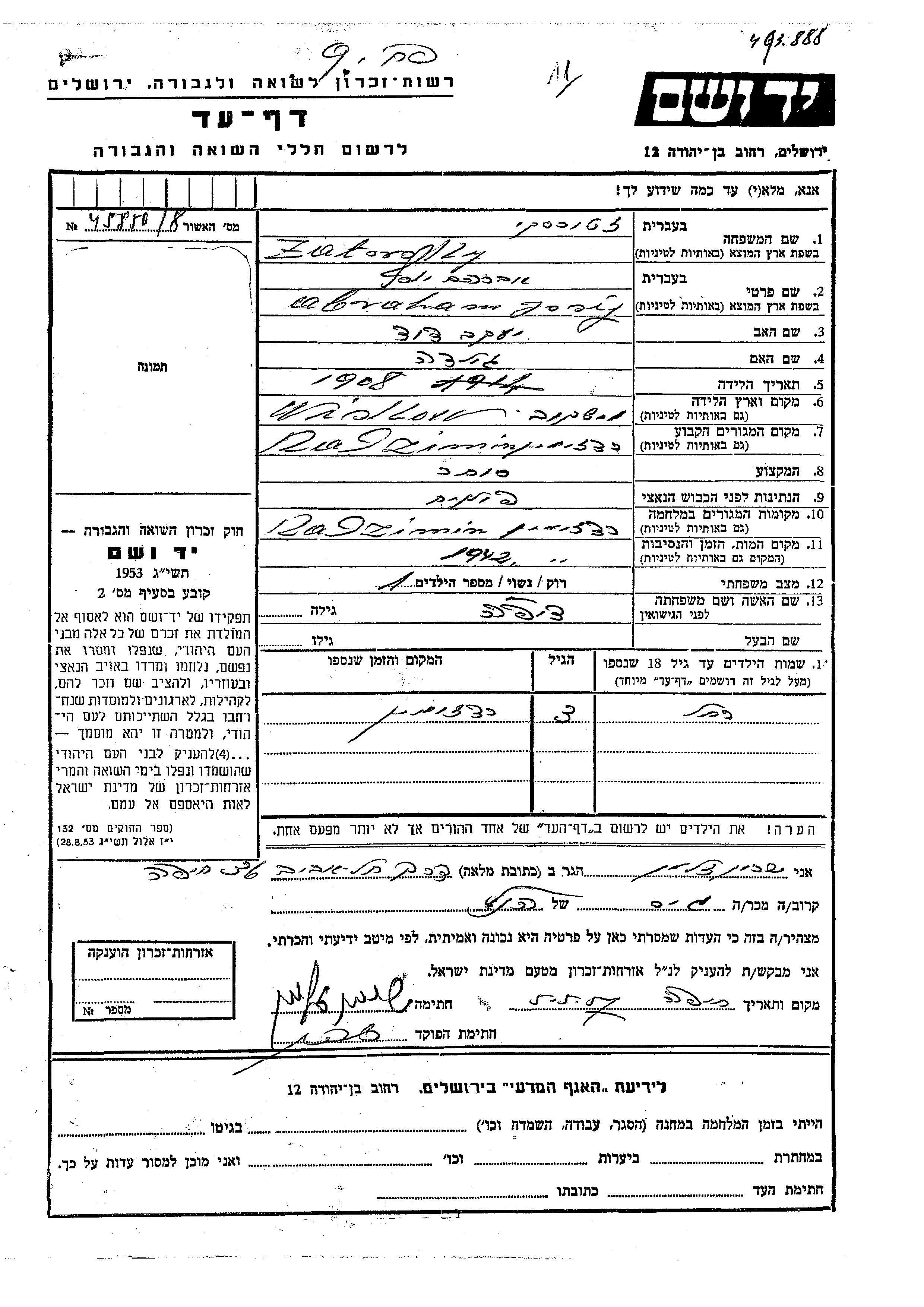 Zatorsky Abraham Josef 1908 Radzymin, Polen Gedenkblatt