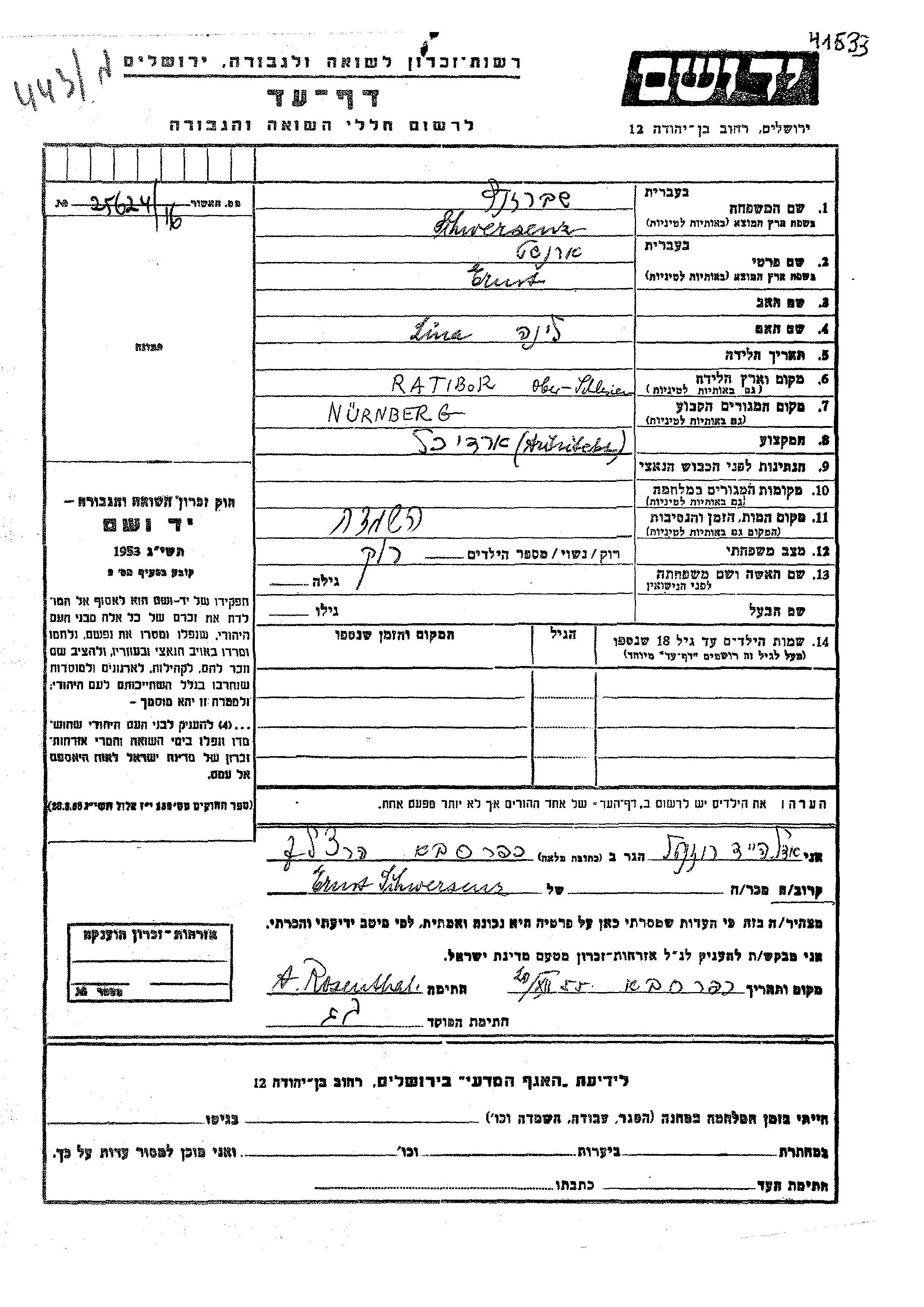 Yad Vashem - Gedenkblätter Sammlung