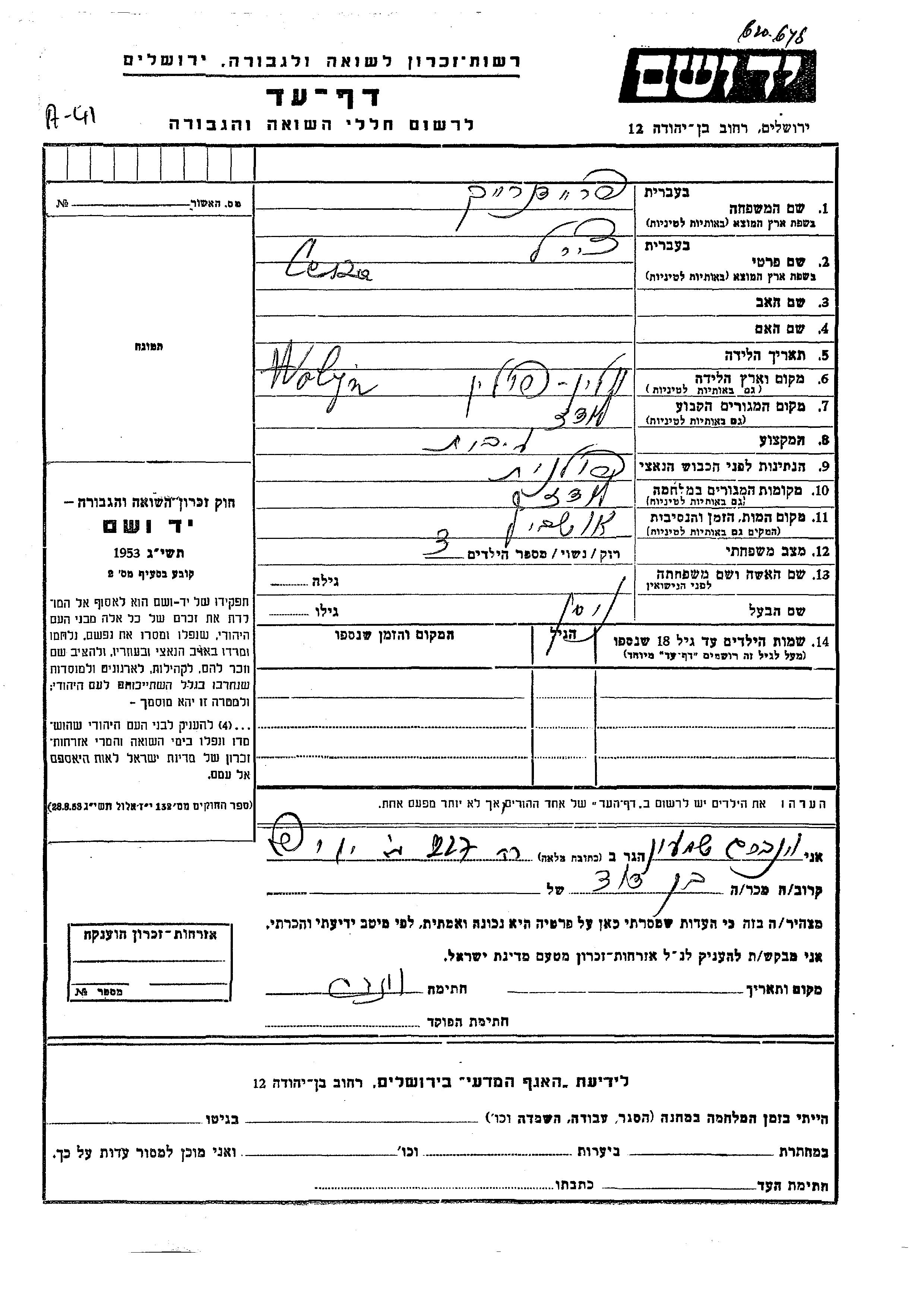 Cesza Tzirel Freidenreikh wurde in Wolyn, Polen geboren. Sie war Hausfrau und mit Nisan Verheiratet. Vor dem Zweiten Weltkrieg lebte sie in Lodz, Polen. Während des Krieges war sie in Lodz, Polen.