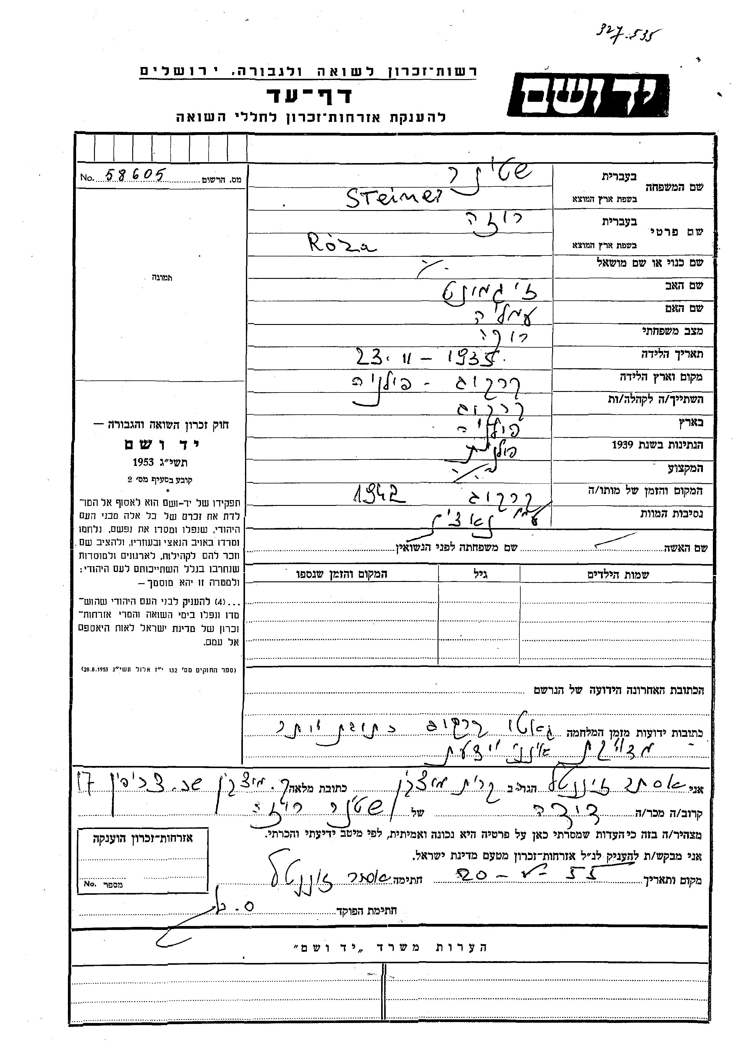 Roza wurde in der Schoah ermordet. Todesort: Krakow, Polen im Jahr 1942.