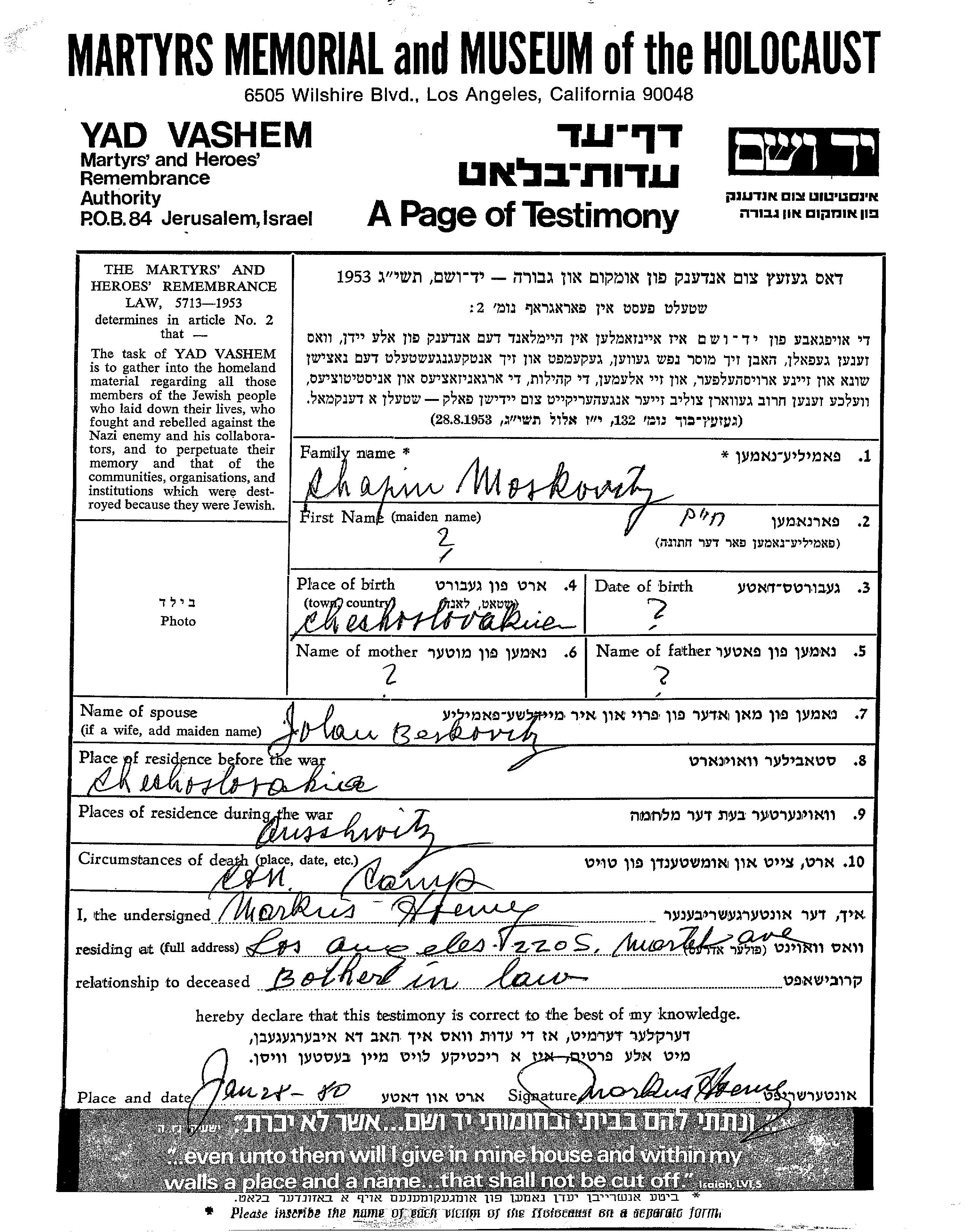 Juden wurden in der Schoah auf verschiedenste Weisen ermordet, unter anderem: Vergasen, Erschiessen, lebendig verbrannt werden, lebendig begraben werden, Tod durch Erschöpfung durch Zwangsarbeit, Epidemien, mangels jeder hygienischer Bedingung oder dem Fehlen medizinischer Versorgung. Manche Juden nahmen sich das Leben, um der Festnahme und weiterer Verfolgung zu entgehen oder ihr hoffnungsloses, nicht nachlassendes Leiden zu beenden.