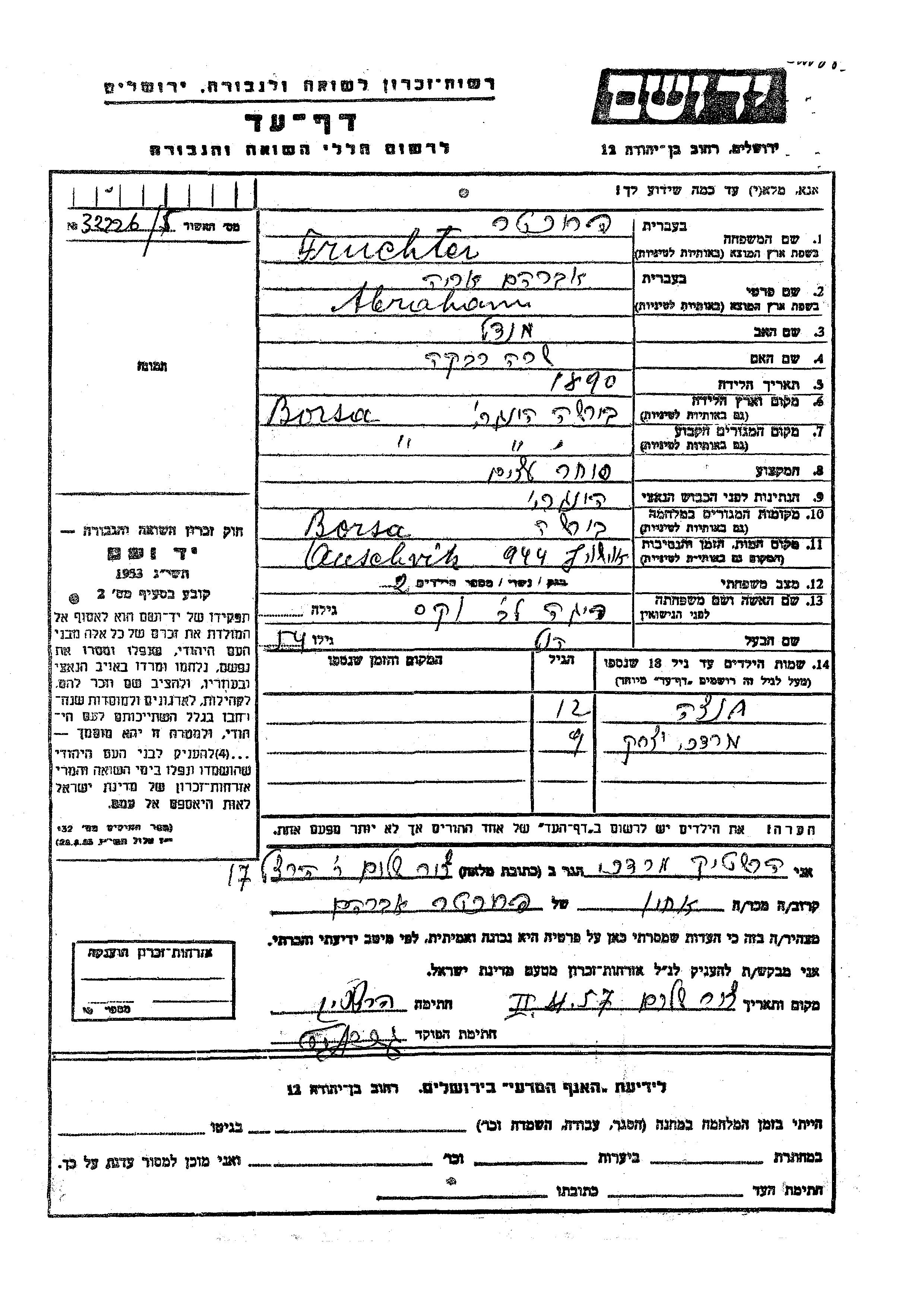 Fruchter Khana Borsa, Rumänien Gedenkblatt