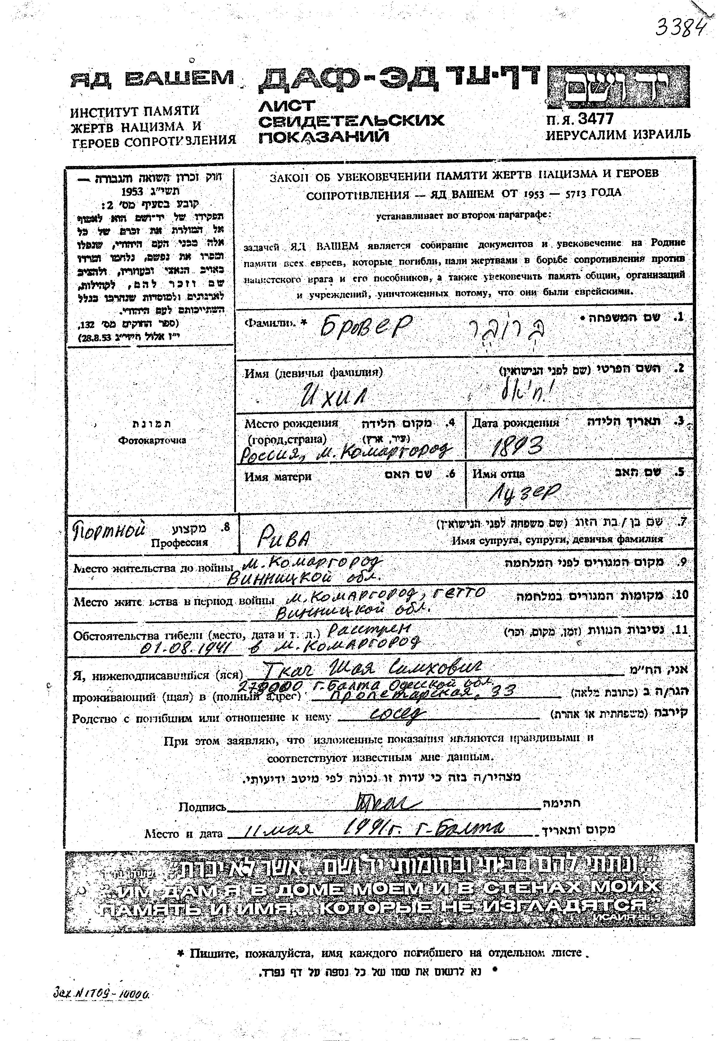 Brover Ikhil 1893 Komargorod, Ukraine (UdSSR) Verfolgtenliste