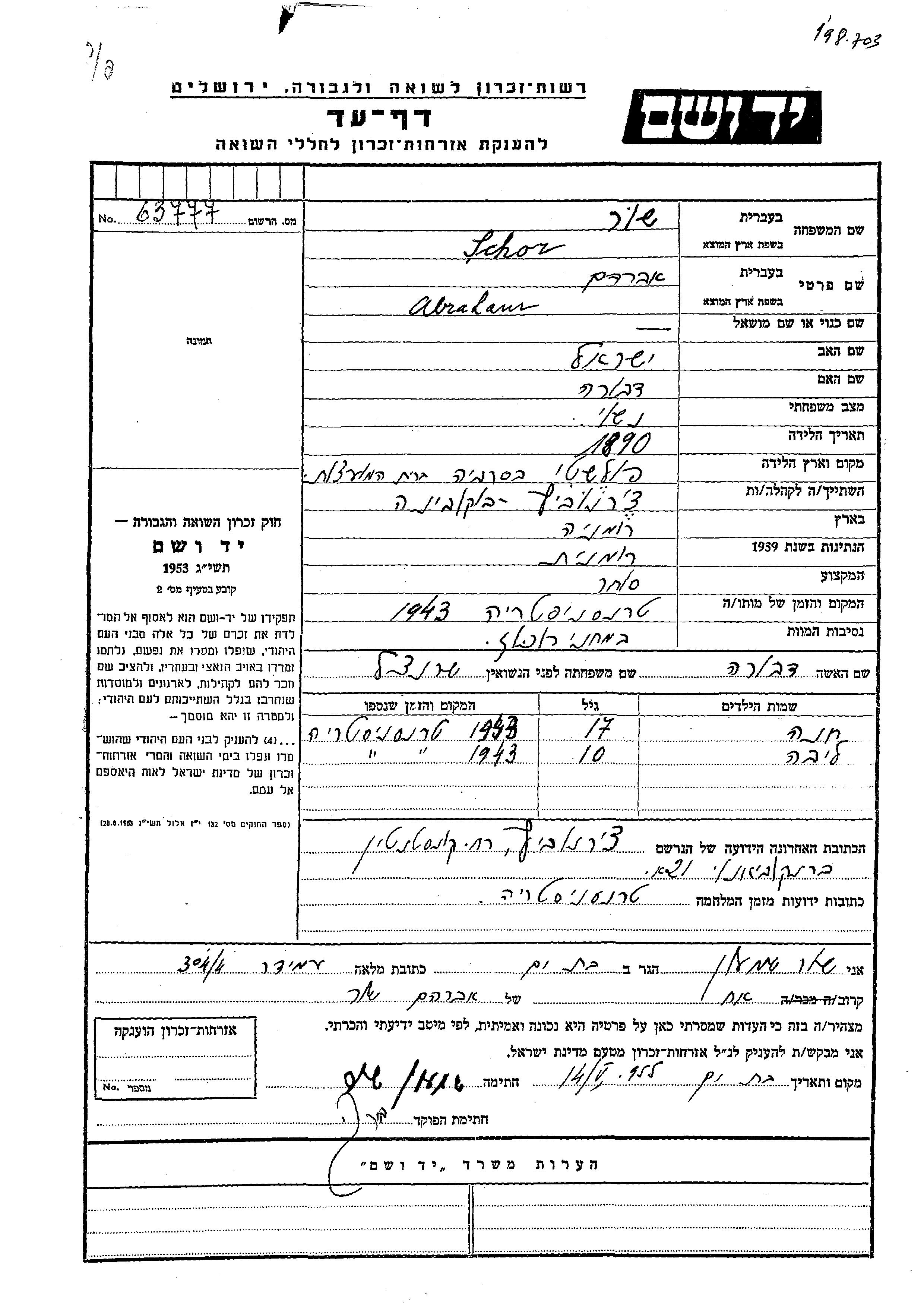 Liba Szor. Vor dem Zweiten Weltkrieg er/sie in Cernauti, Rumänien.
