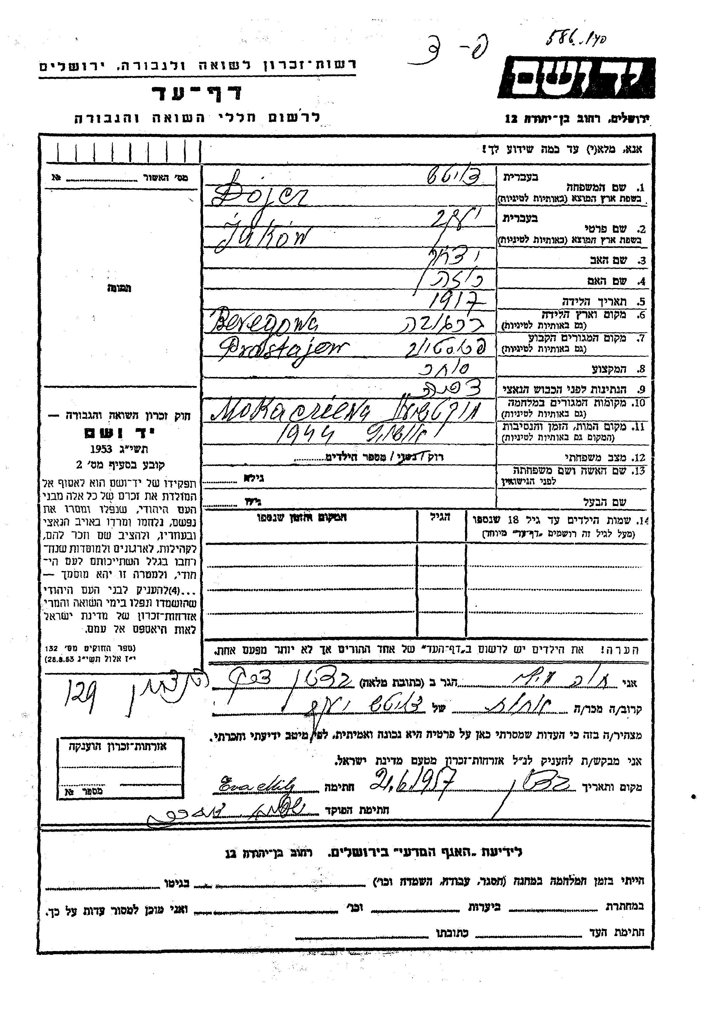 Jakow Dojcz wurde im Jahr 1917 in Beregove, Tschechoslowakei geboren. Er war Kaufmann/-frau. Vor dem Zweiten Weltkrieg lebte er in Prostejov, Tschechoslowakei.