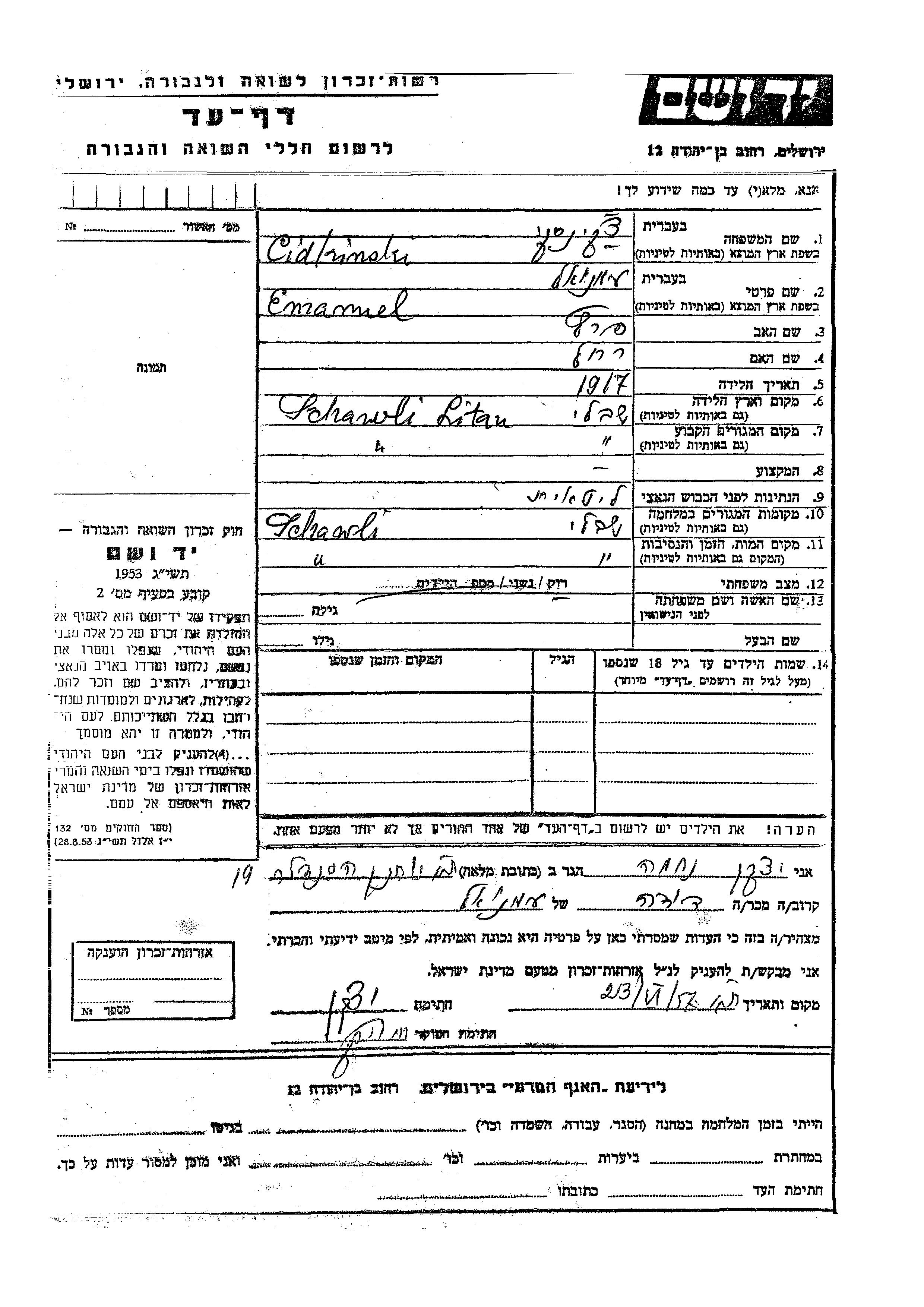 Emanuel wurde in der Schoah ermordet. Todesort: Schawl, Litauen.