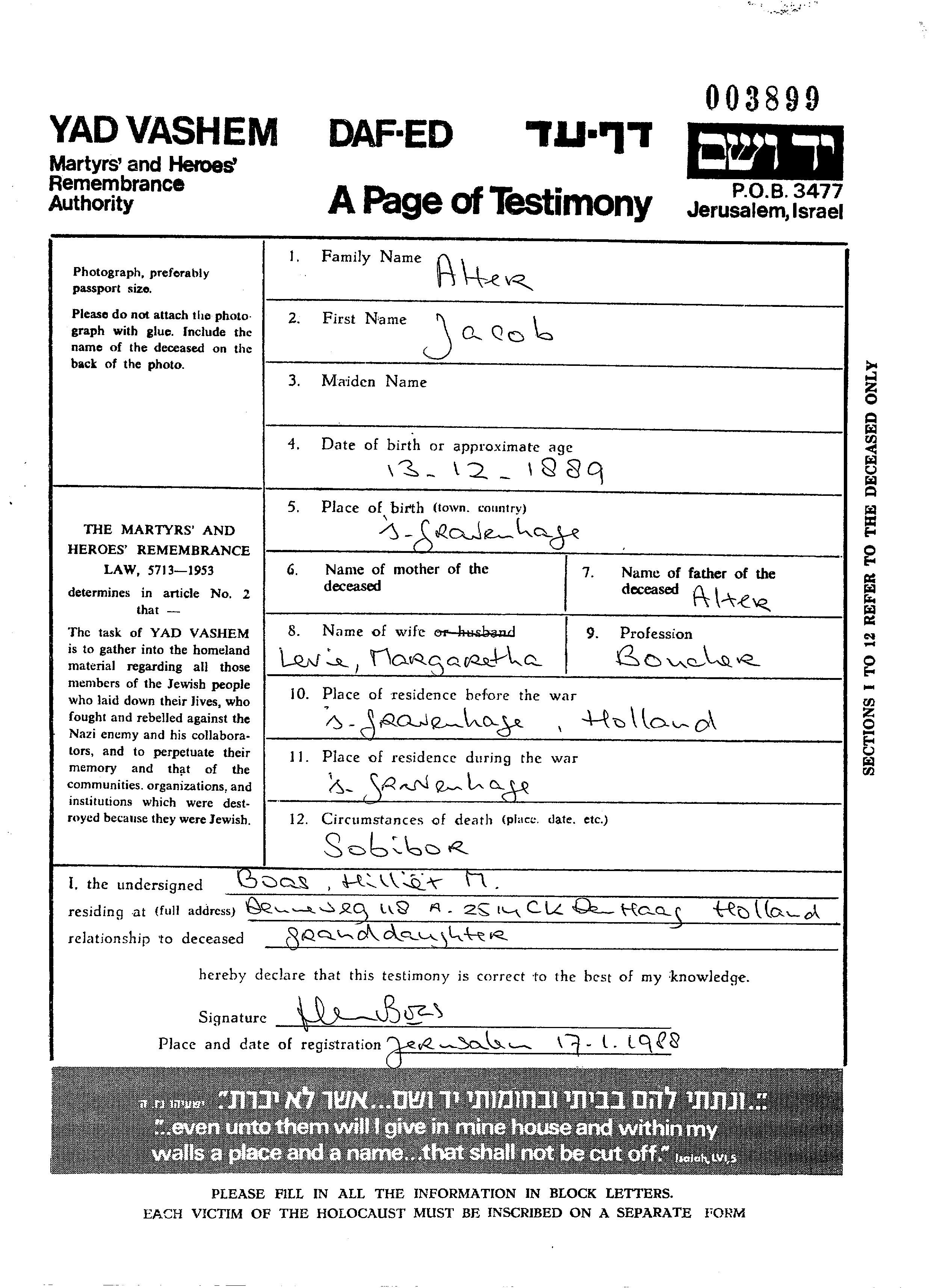 Alter | Jacob | 1889 | 'S Gravenhage, Niederlande | Liste von ermordeten Juden aus Holland |