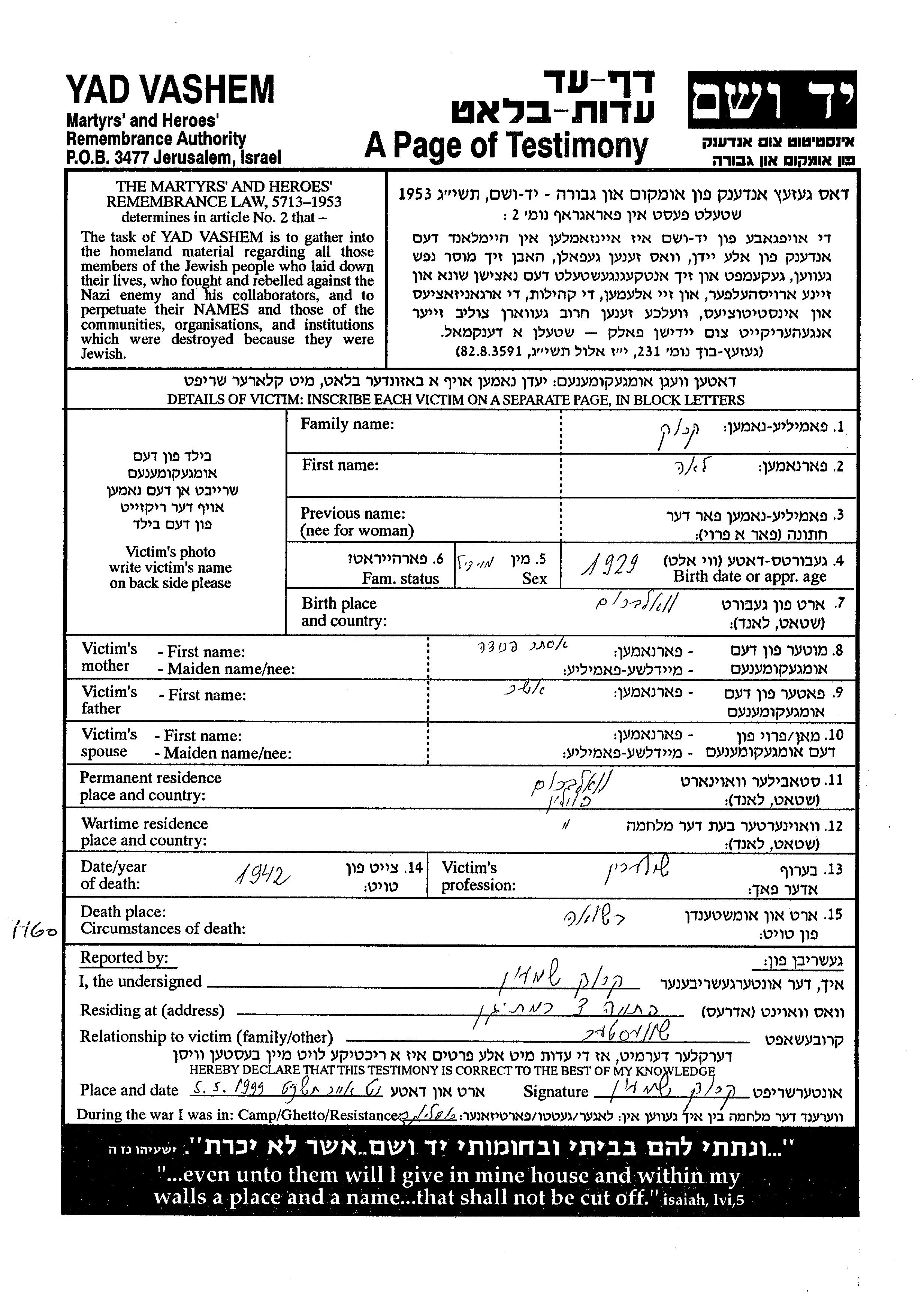 Lea wurde in der Schoah ermordet. Todesort: unbekannter Ort im Jahr 1942.