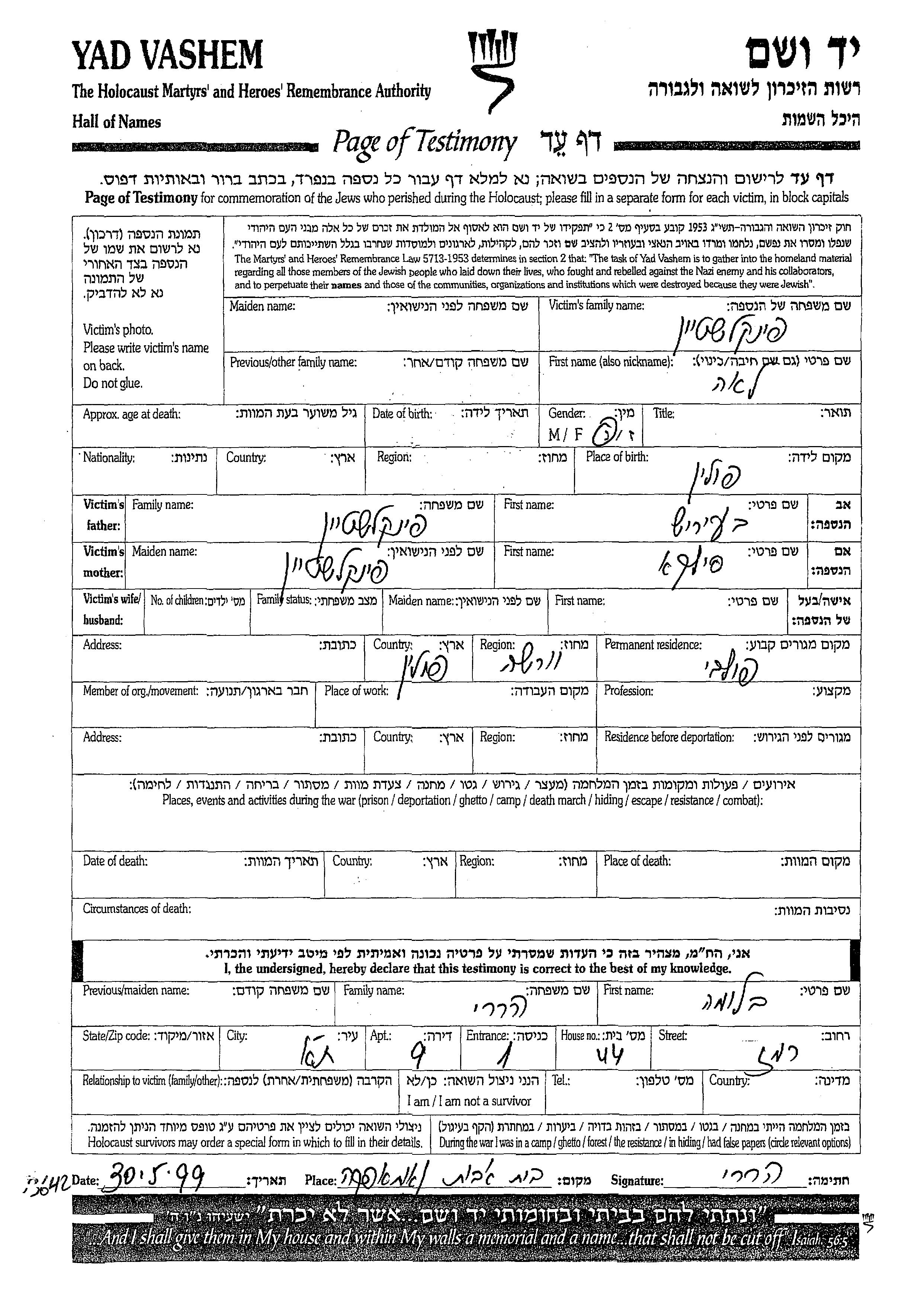 Finkelshtein Lea Pulawy, Polen Gedenkblatt