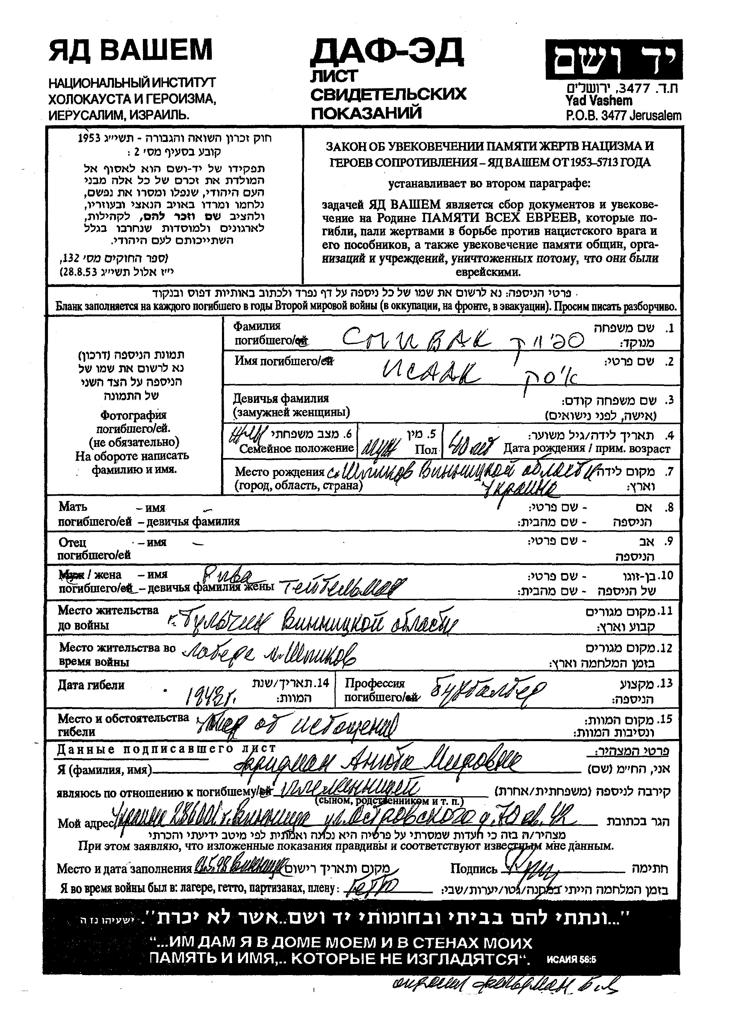 Isaak Spivak wurde im Jahr 1886 in Shpikov, Ukraine (UdSSR) geboren. Vor dem Zweiten Weltkrieg lebte er in Tulchin, Ukraine (UdSSR).