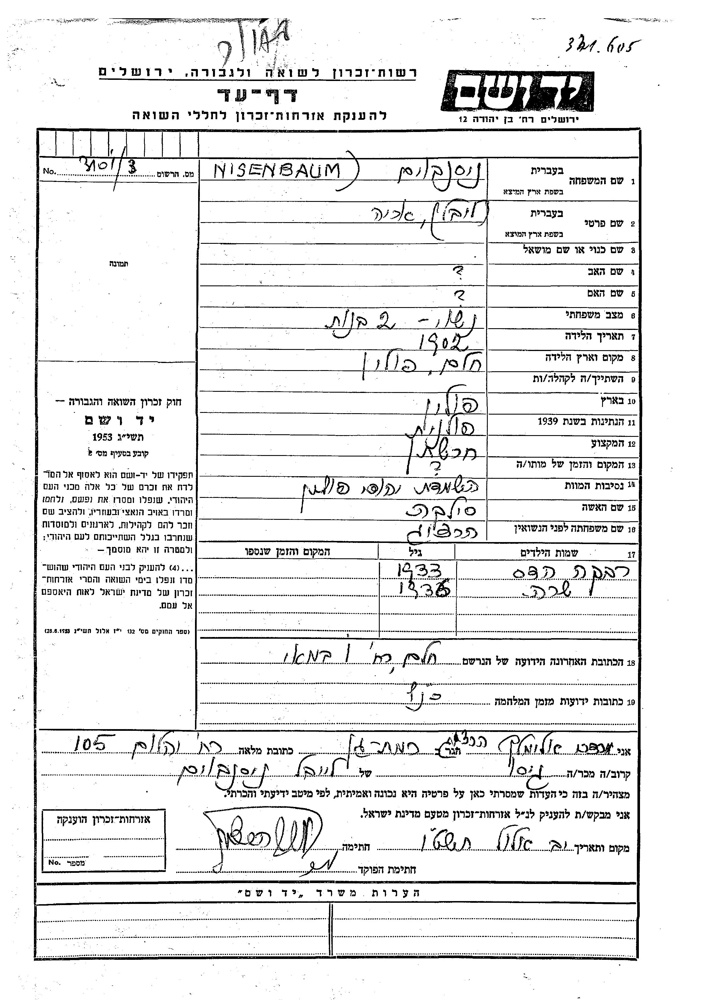 Arie Lev Leibel wurde in der Schoah ermordet. Todesort: Chelm, Polen im Jahr 1942.