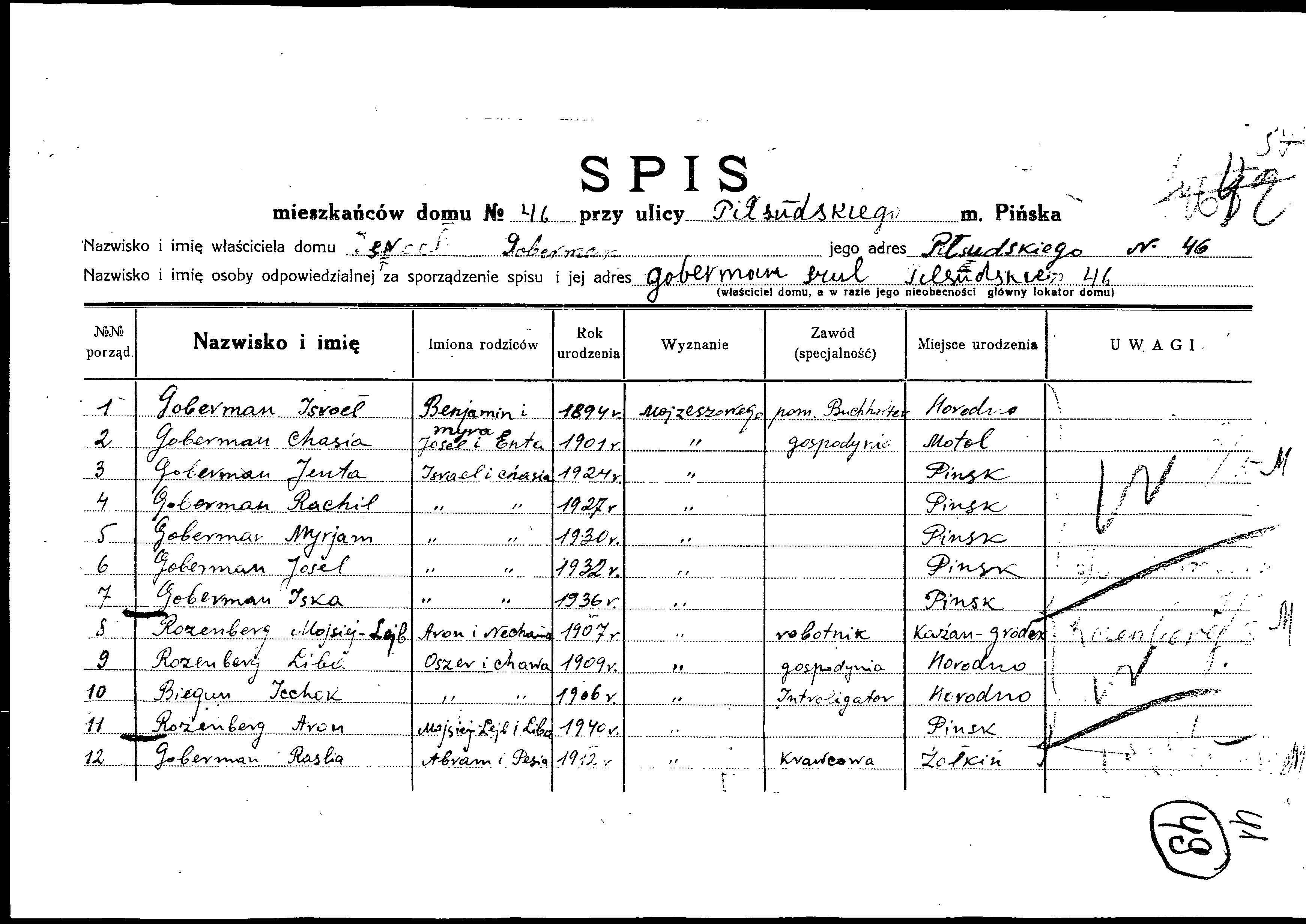 Goberman Josel 1932 Pinsk, Polen Verfolgtenliste