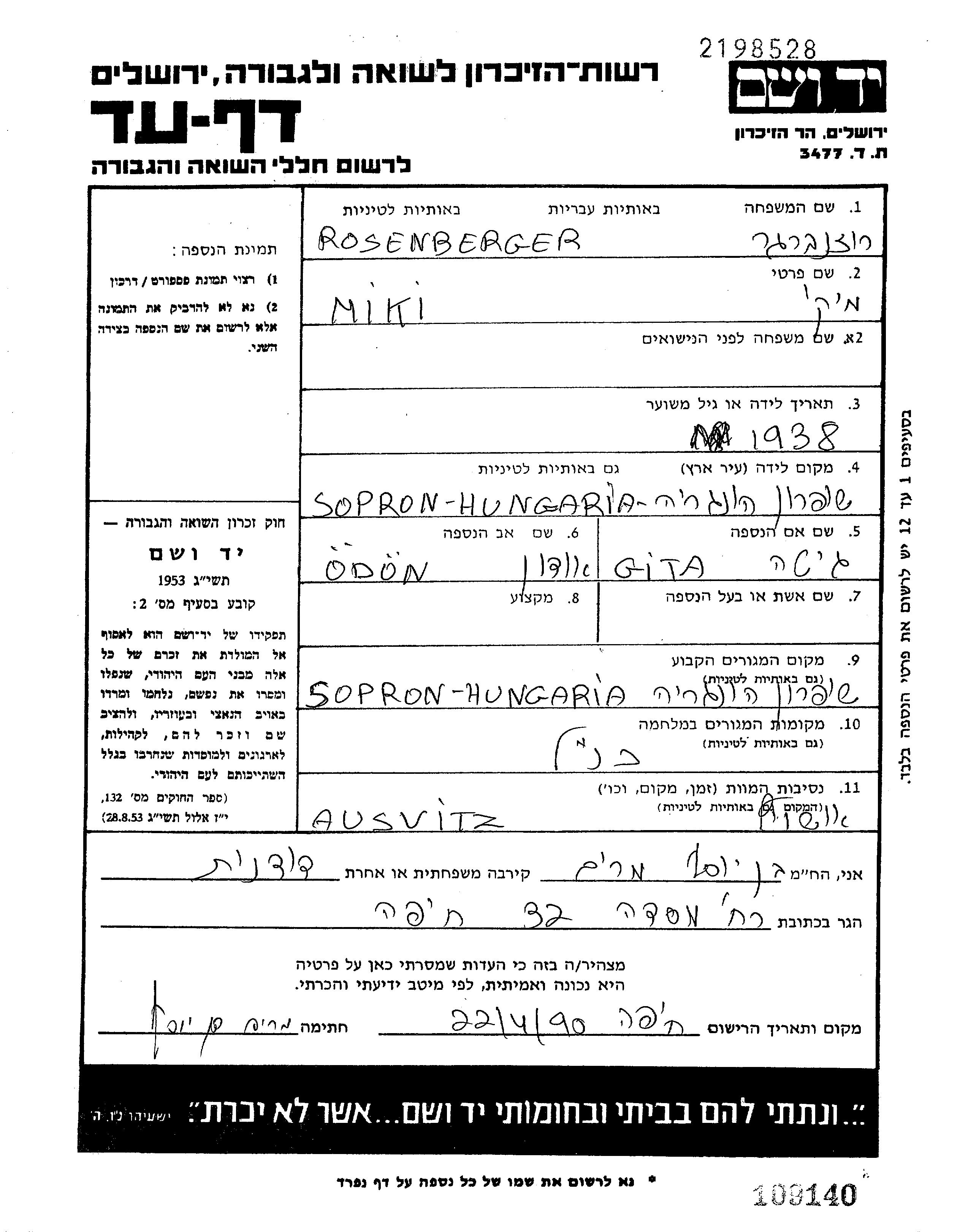 Rozenberger | Miki | 1938 | Sopron, Ungarn | Gedenkblatt |