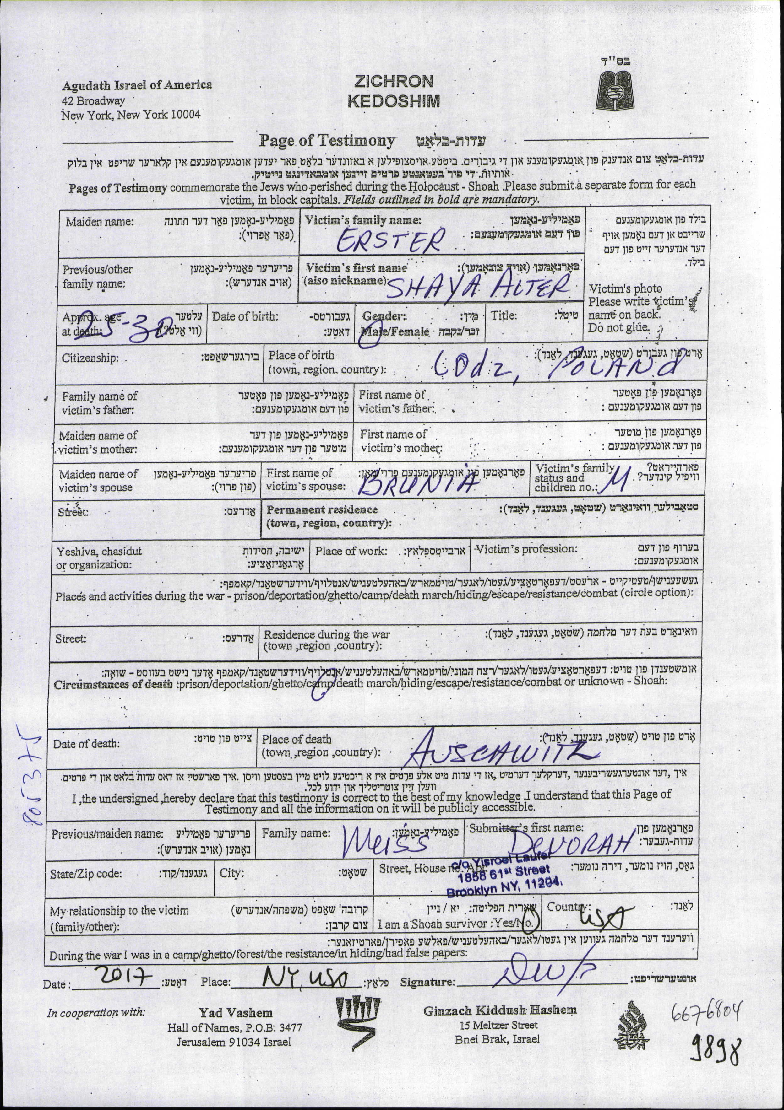 Erster | Shaya Alter | unbekannter Ort, | Gedenkblatt | |