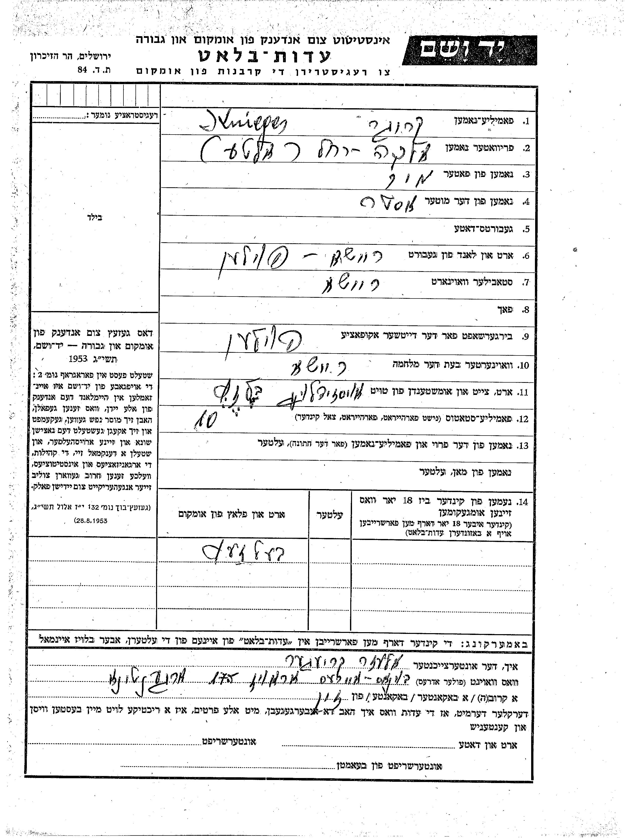Yad Vashem - Gedenkblätter Sammlung