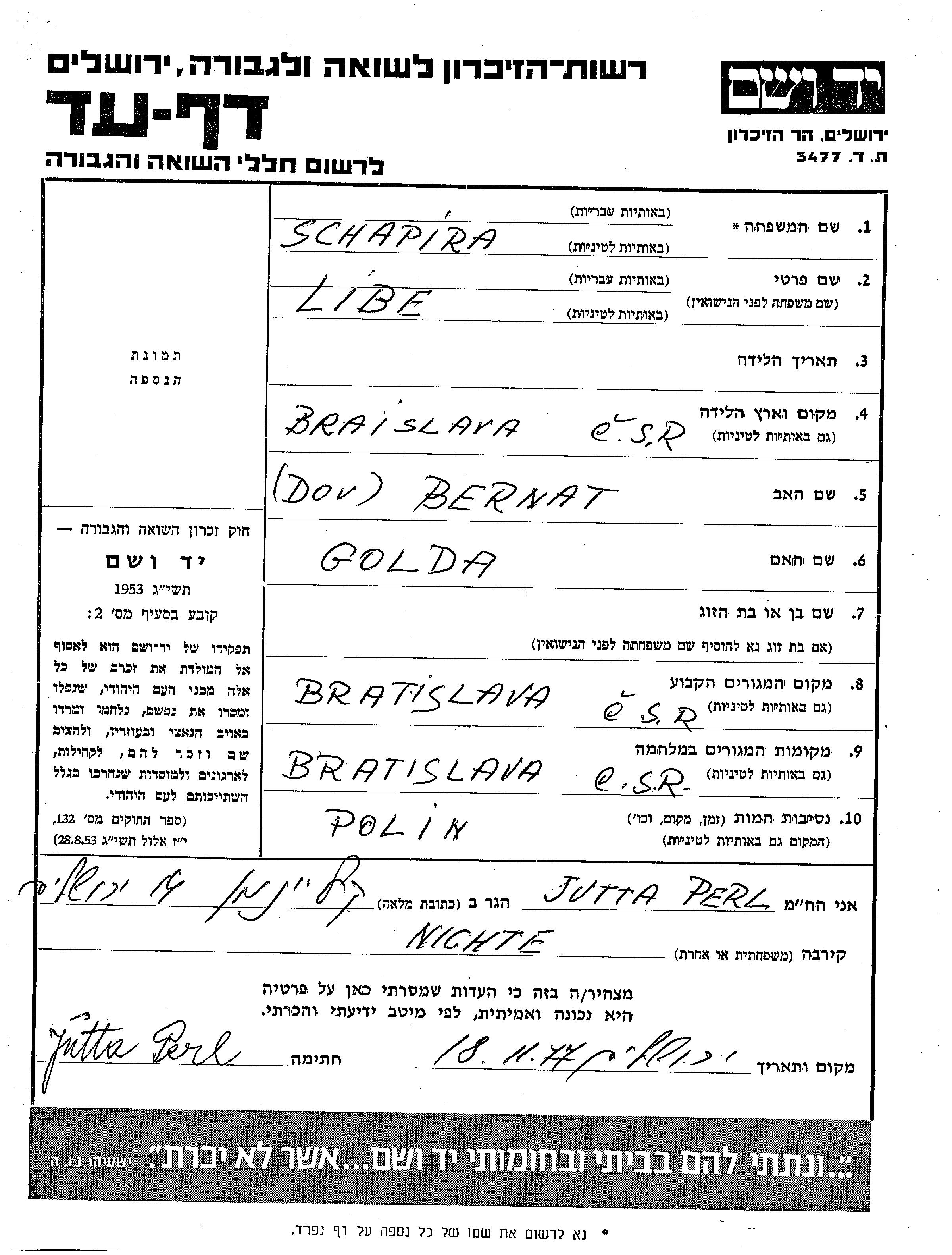Schapira | Liba | Bratislava, Tschechoslowakei | Gedenkblatt | |