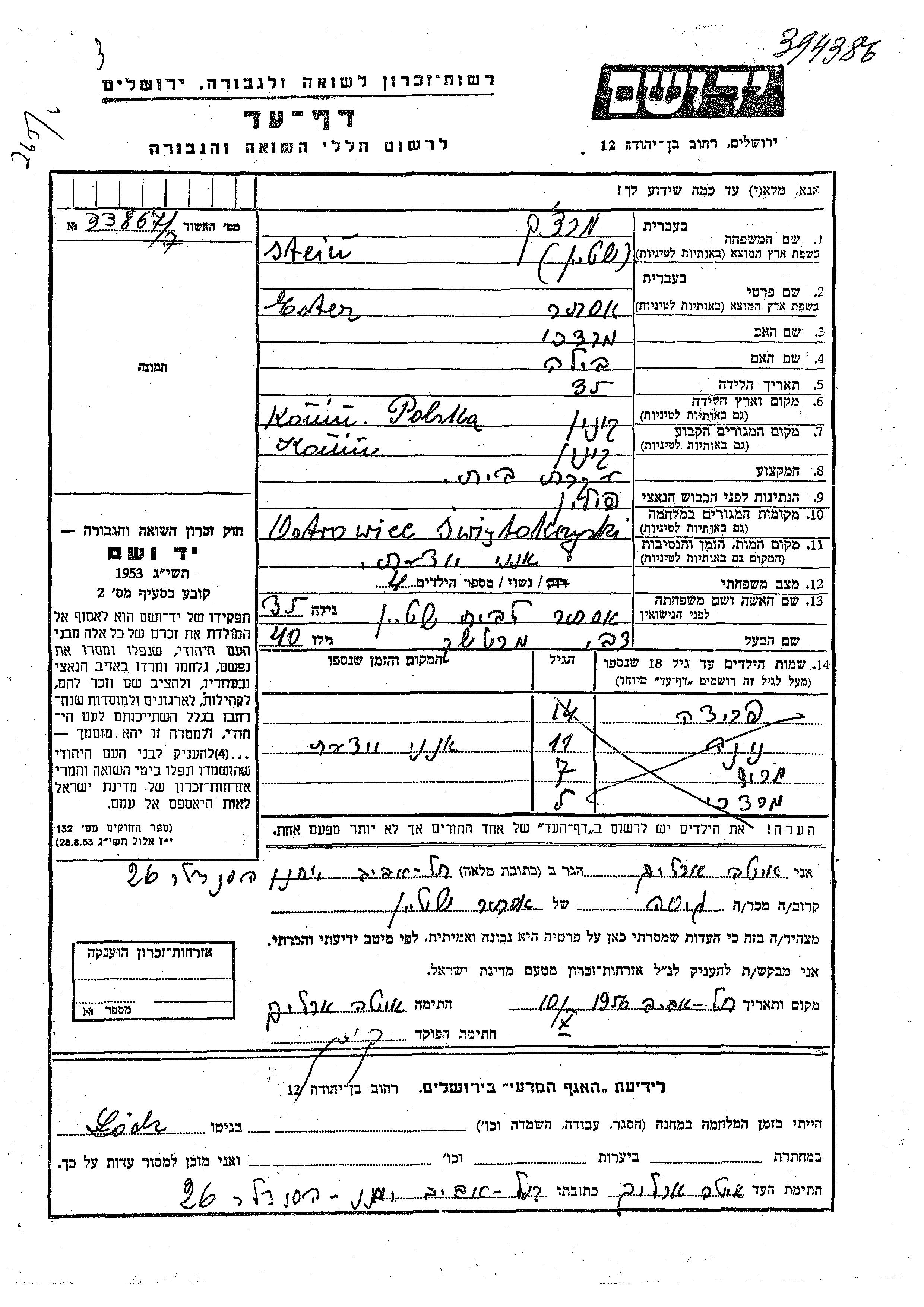 Mordekhai Stein Marczak. Vor dem Zweiten Weltkrieg lebte er in Konin, Polen.