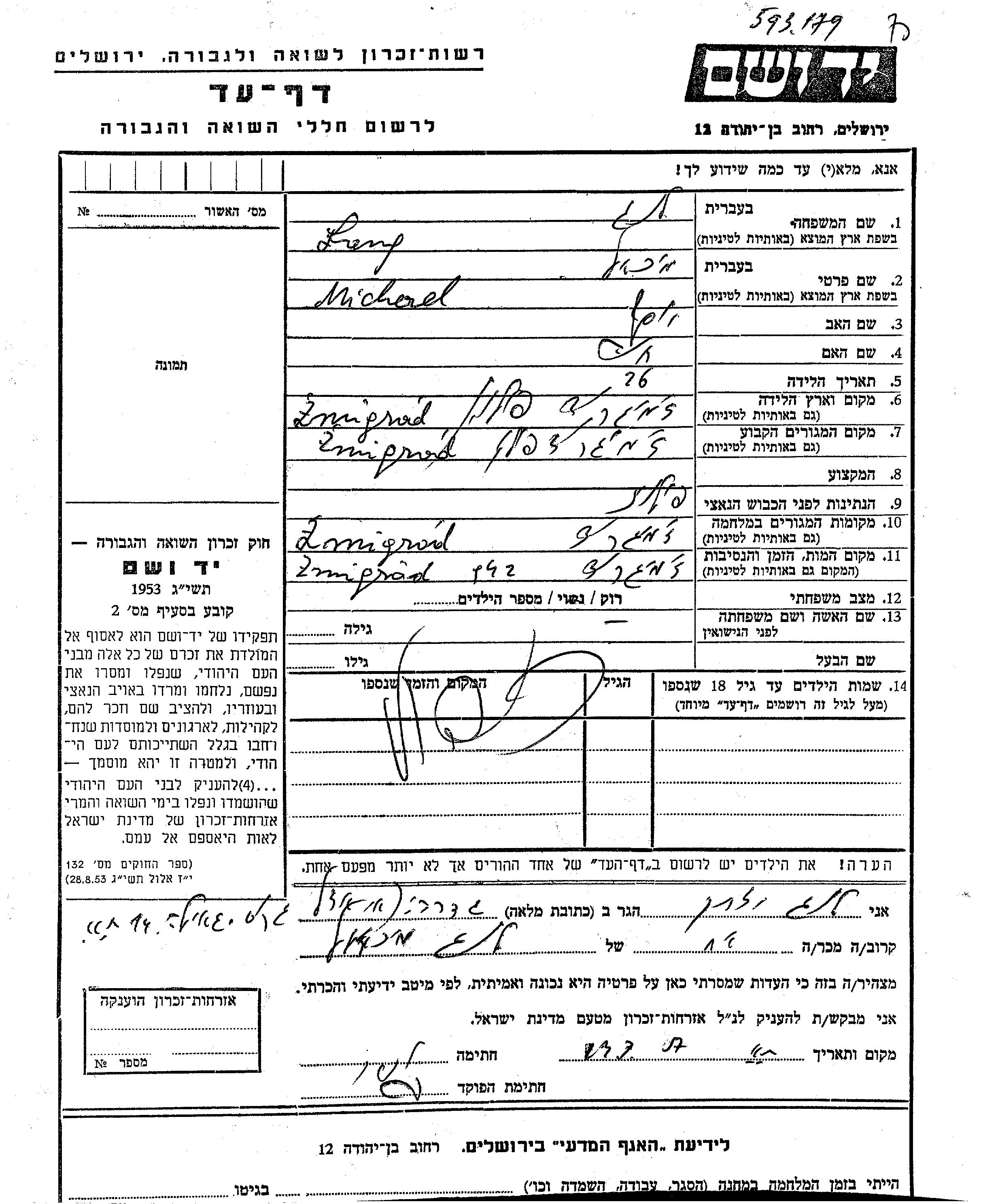 Mekhael wurde in der Schoah ermordet. Todesort: unbekannter Ort im Jahr 1942.
