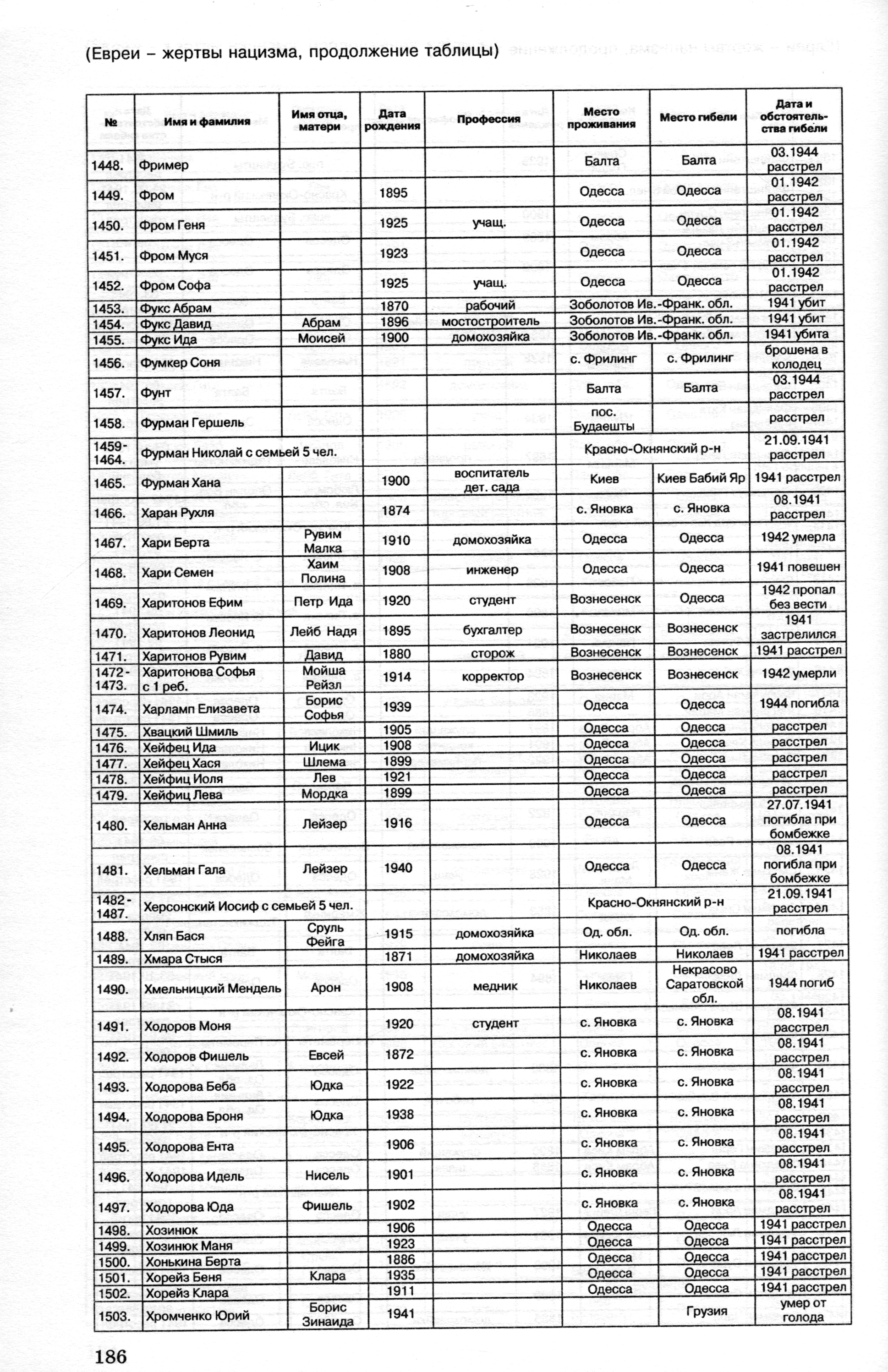 Khmelnitzki | Mendel | 1908 | Nikolayev, Ukraine (UdSSR) | Verfolgtenliste |