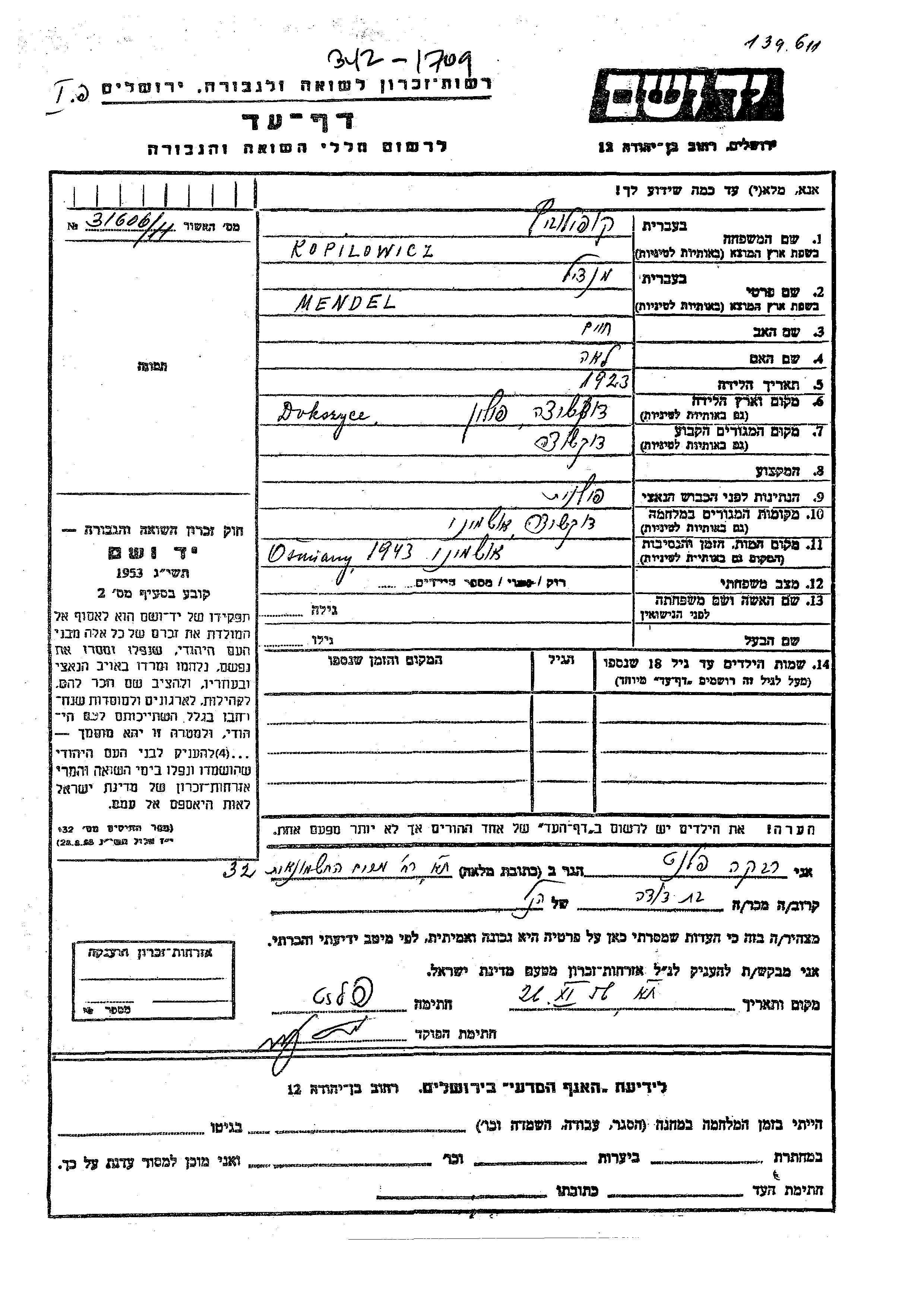 Kopilowits | Mendel | Dokszyce, Polen | Gedenkblatt |