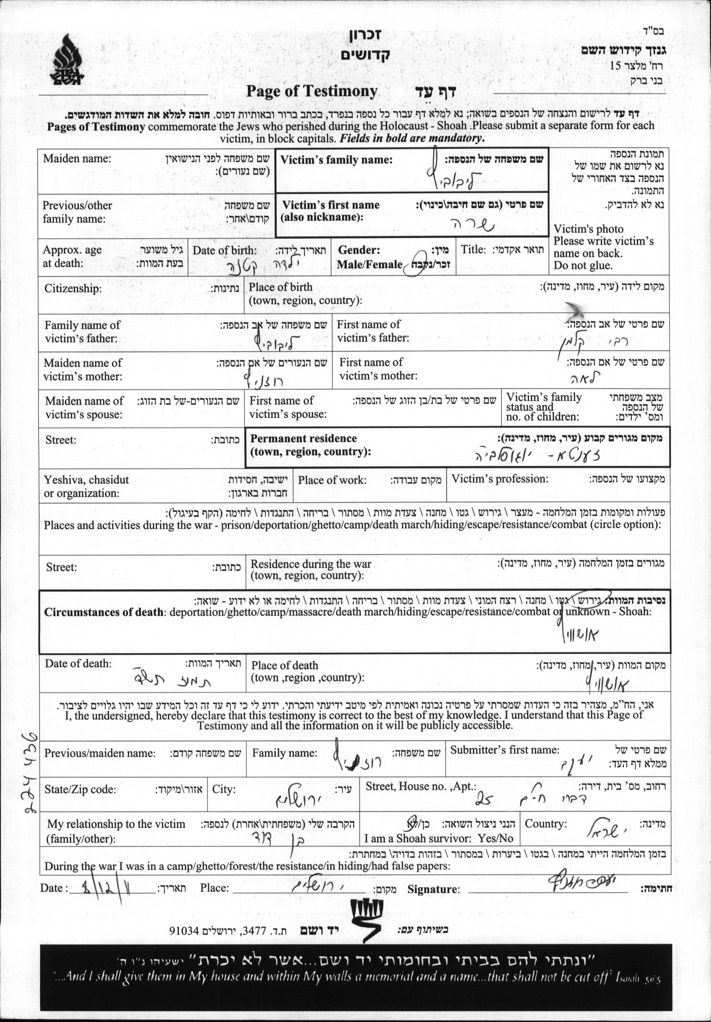 Leibovitz | Sara | Zenta, Jugoslawien | Aufzeichnungen ueber ermordete Personen | |