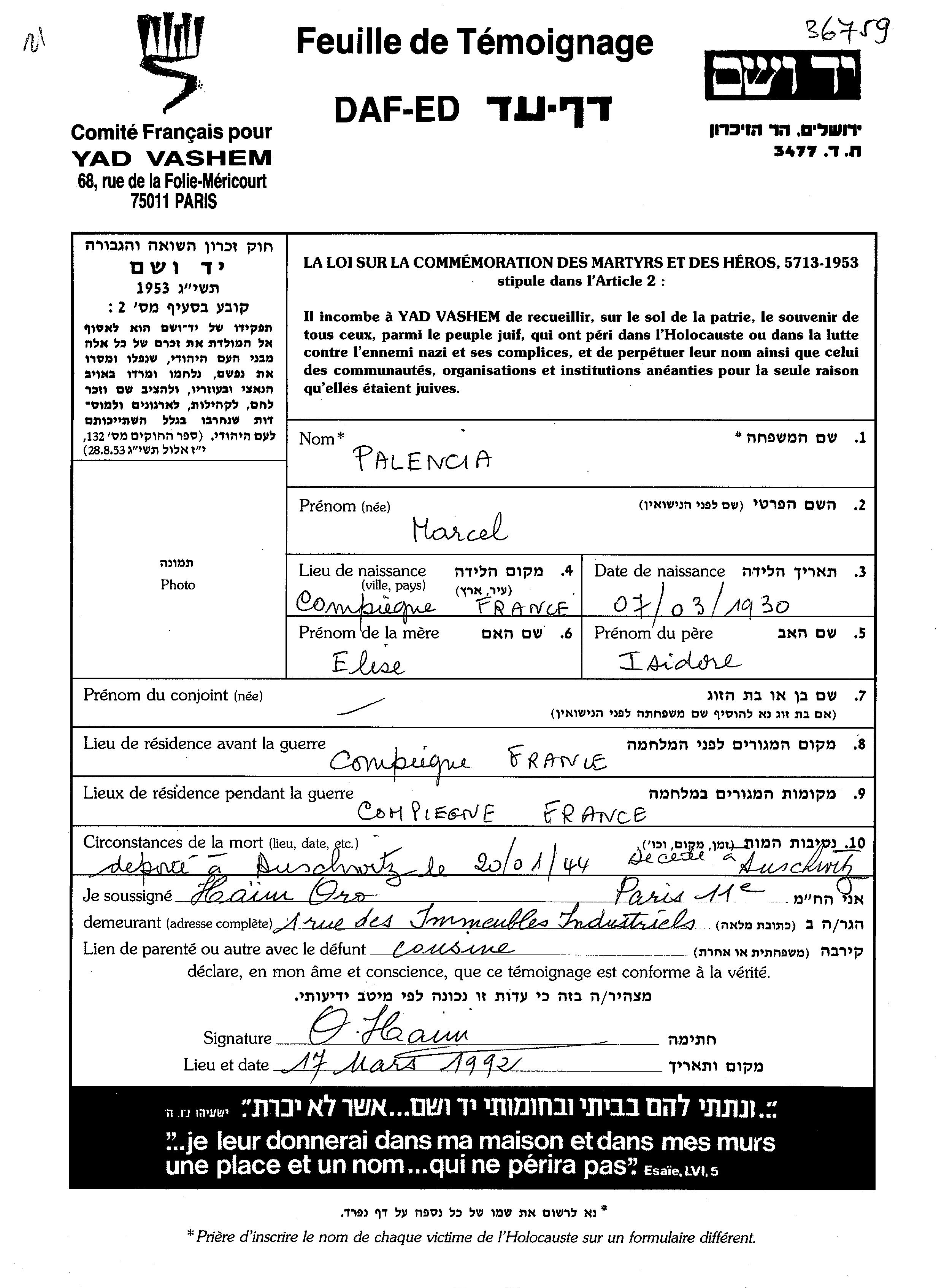Palencia Marcel 1930 Compiegne, Frankreich Verfolgtenliste
