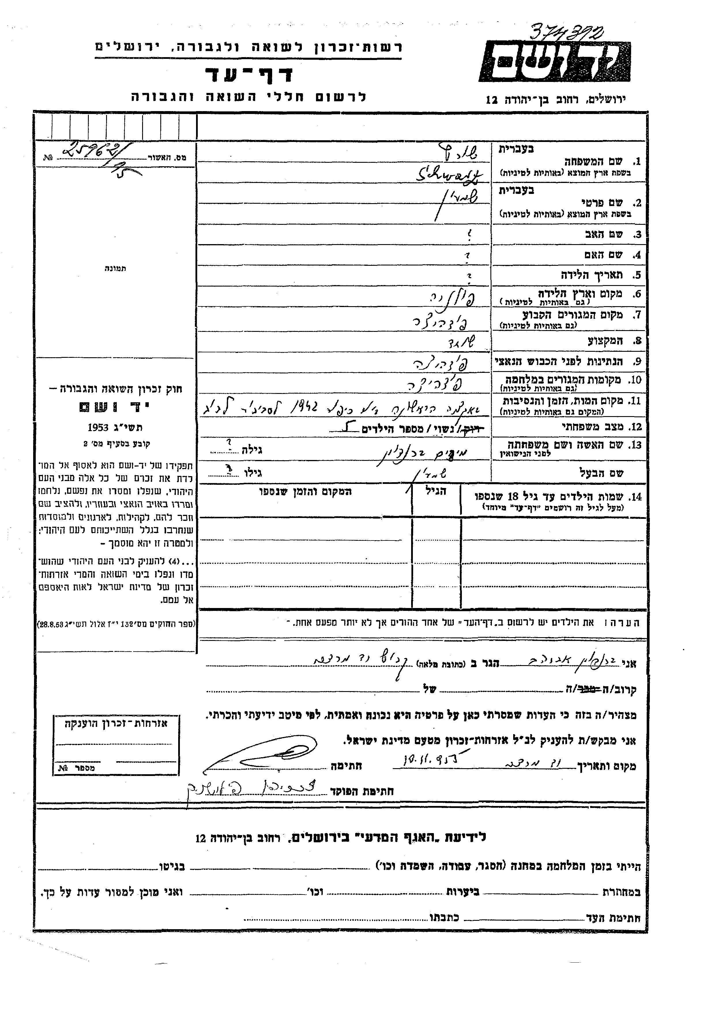 Shimon wurde in der Schoah ermordet. Todesort: Lwow, Polen im Jahr 1942.
