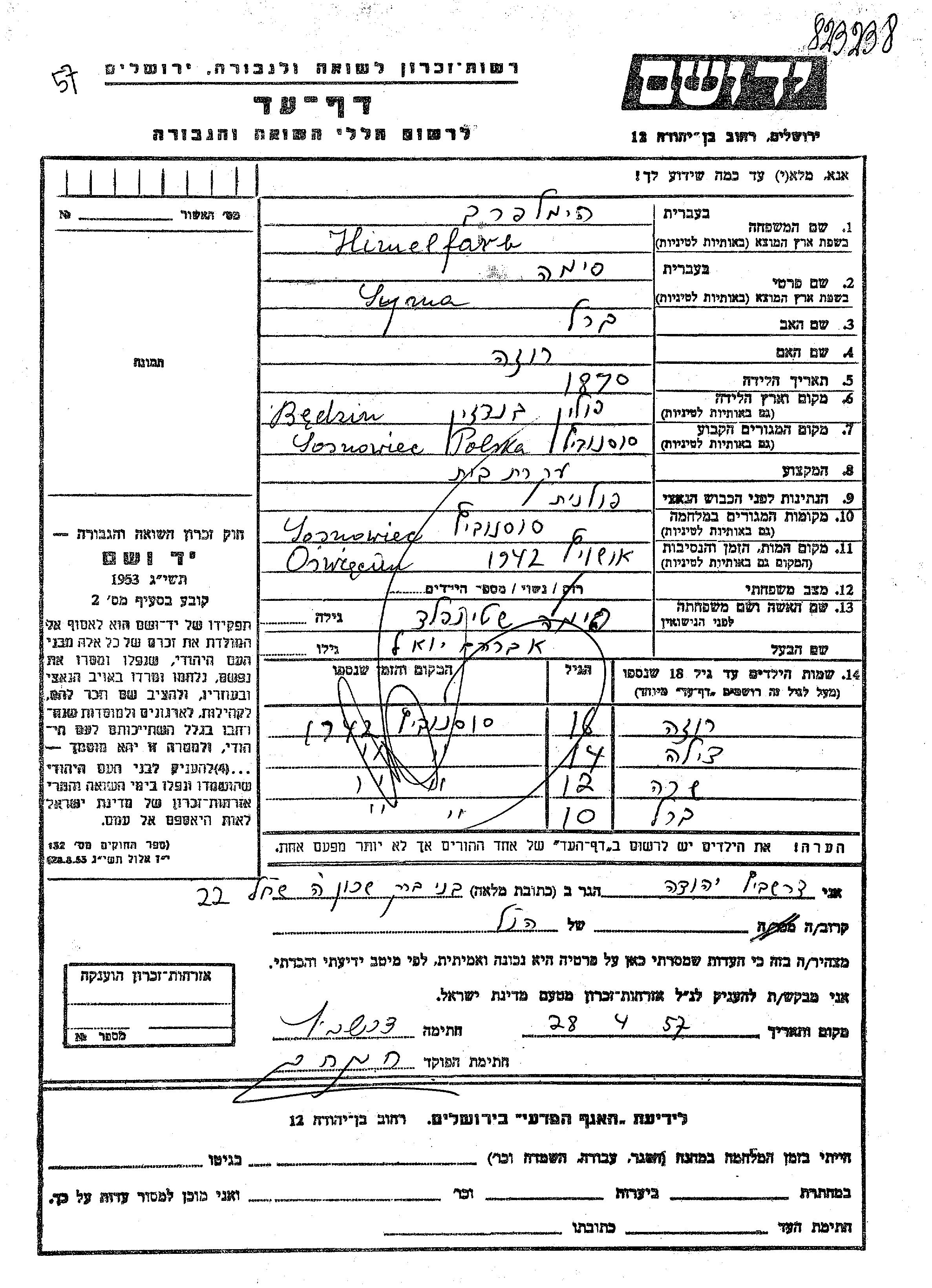 Sara Himelfarb. Vor dem Zweiten Weltkrieg lebte sie in Sosnowiec, Polen.