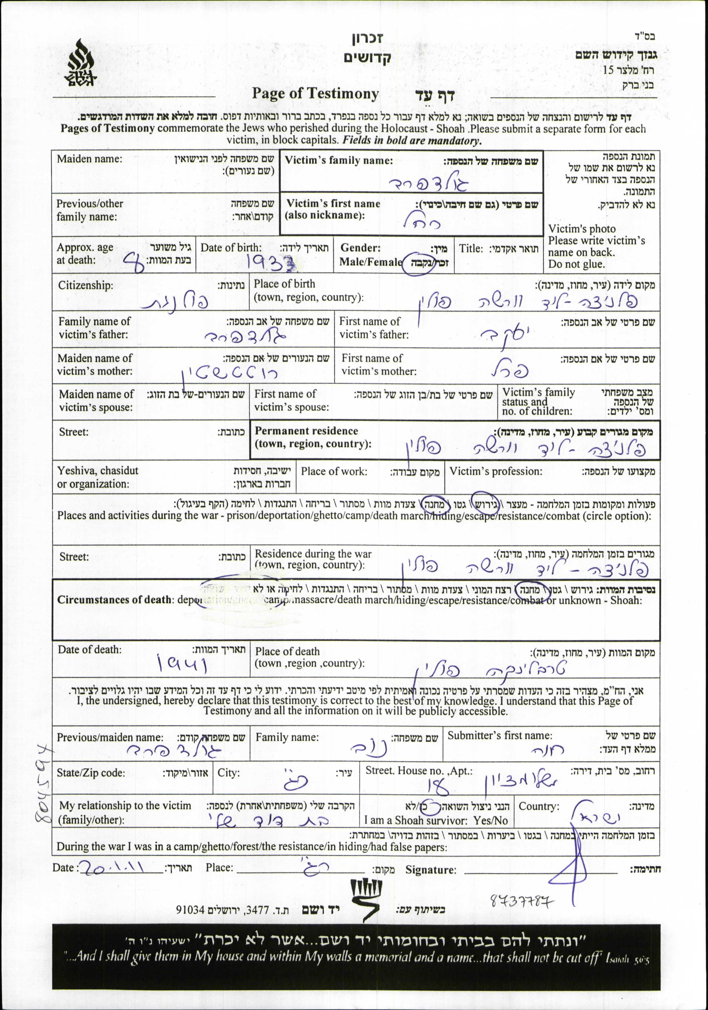 Rakhel wurde in der Schoah ermordet. Todesort: Treblinka, Polen im Jahr 1941.