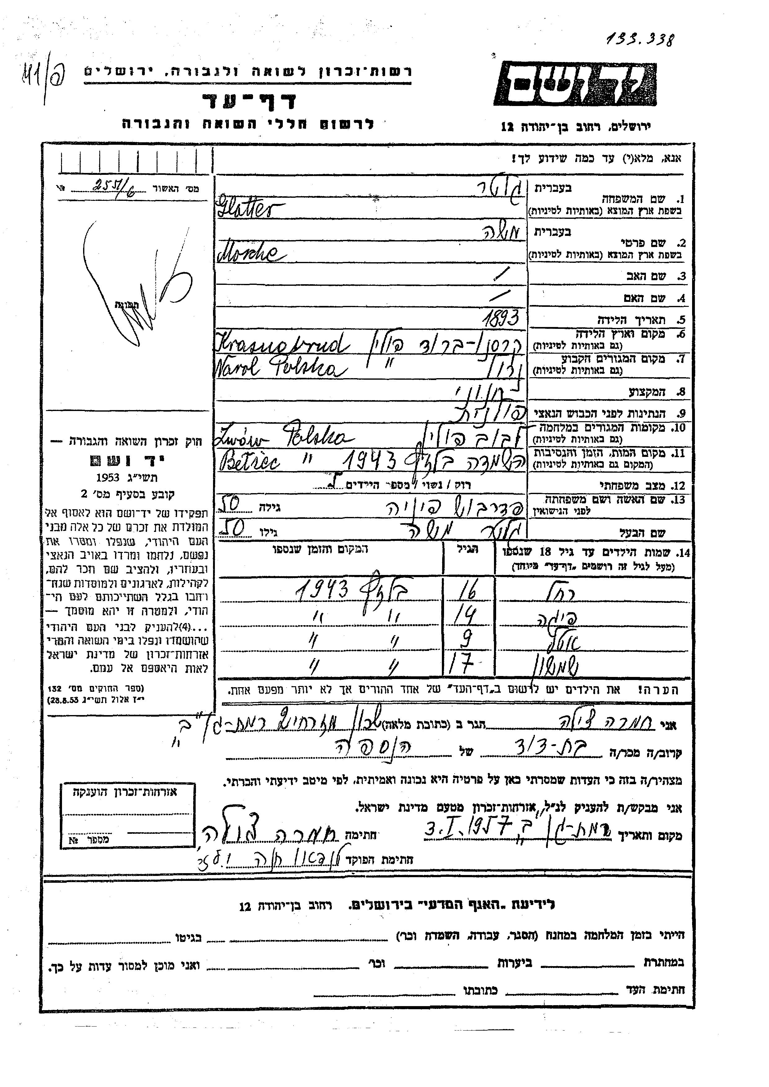 Glatter | Rakhel | Narol, Polen | Gedenkblatt |