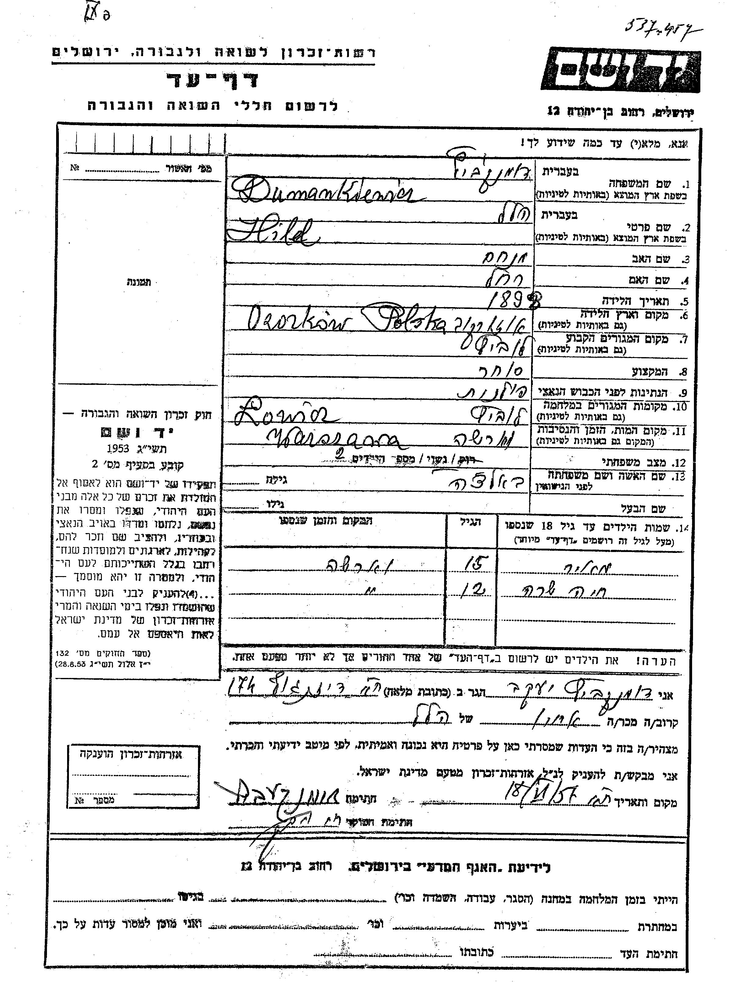 Khaia Sara Dumankiewicz. Vor dem Zweiten Weltkrieg lebte sie in Lowicz, Polen.