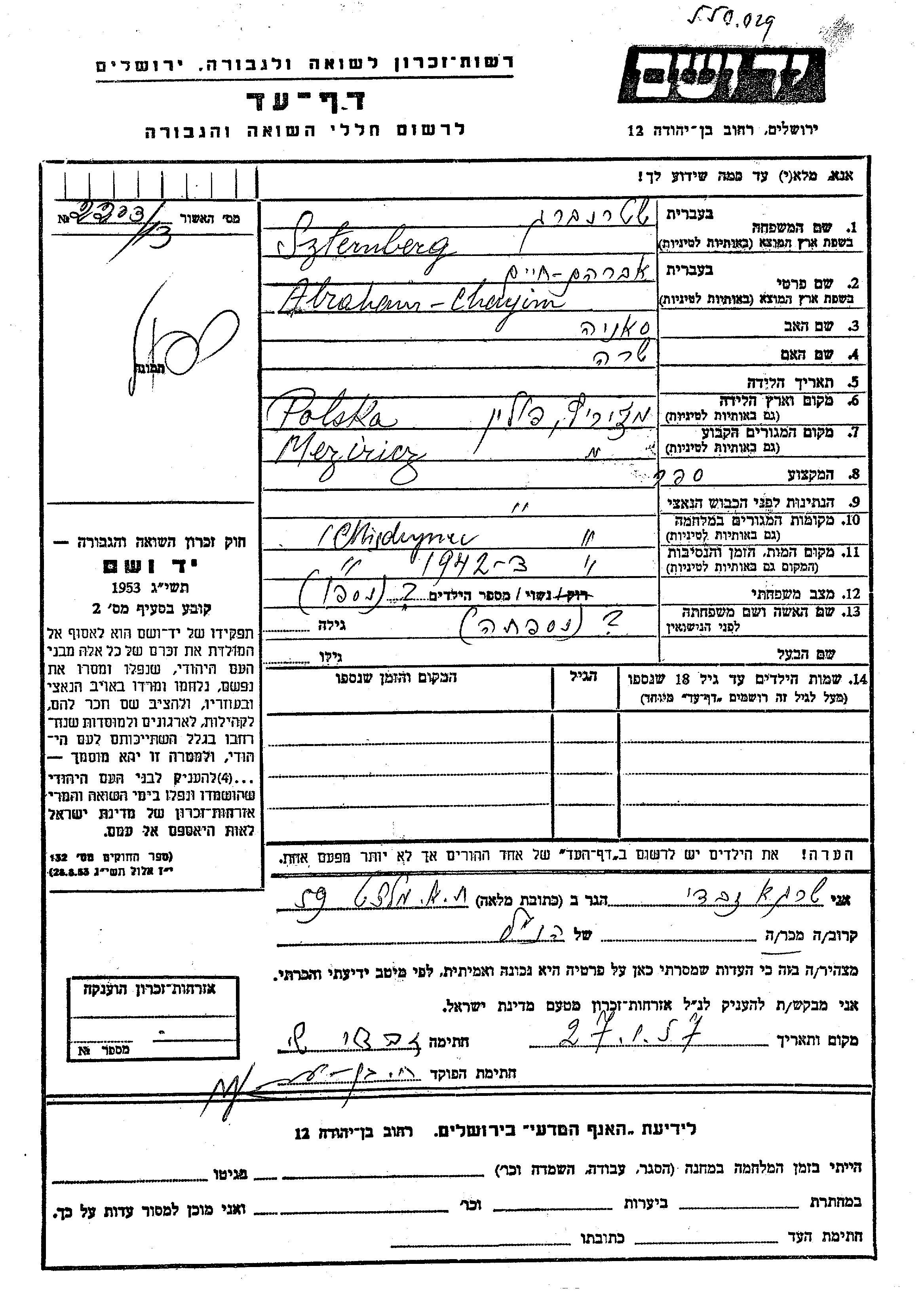 Shternberg | Avraham | Miedzyrzecz, Polen | Liste ermordeter Juden aus Gedenkbuechern (Yizkor Books) |