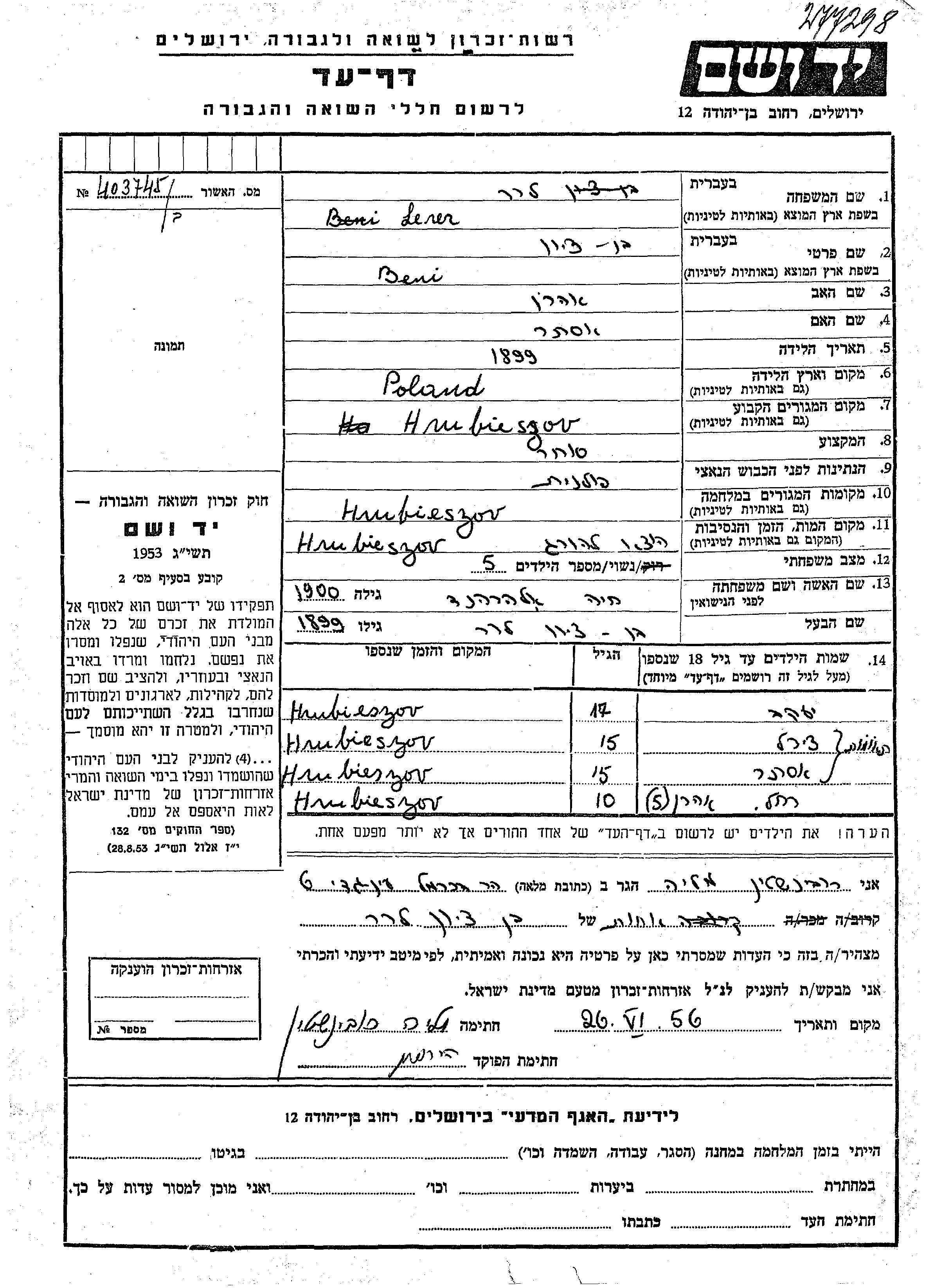 Rakhel wurde in der Schoah ermordet. Todesort: unbekannter Ort.