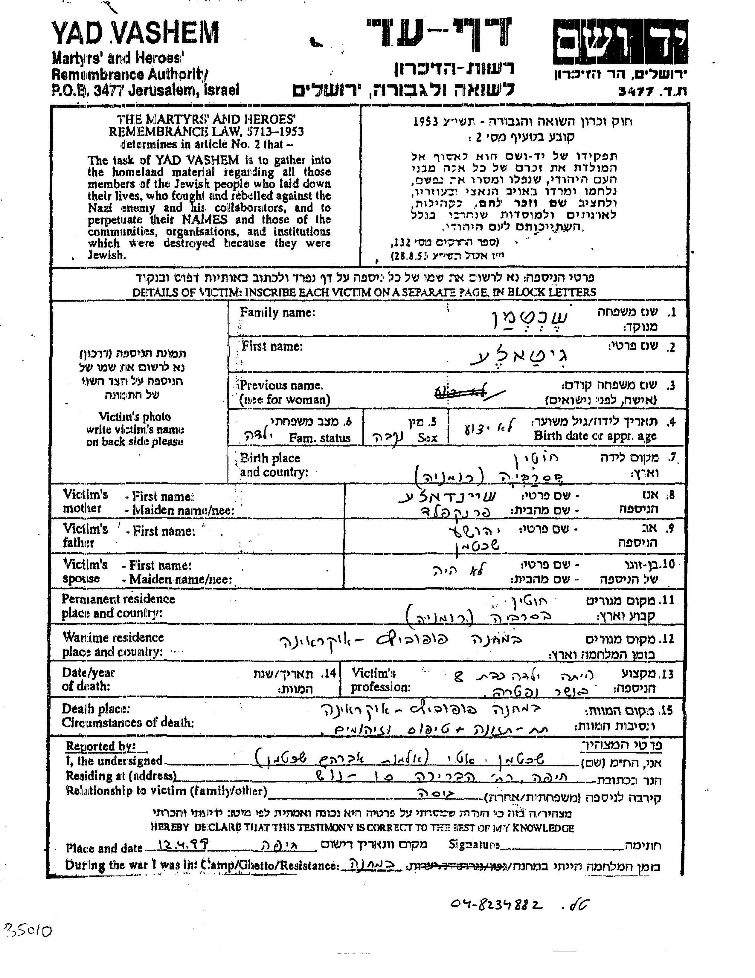 Gitel wurde in der Schoah ermordet. Todesort: Popovitz, Ukraine (UdSSR).