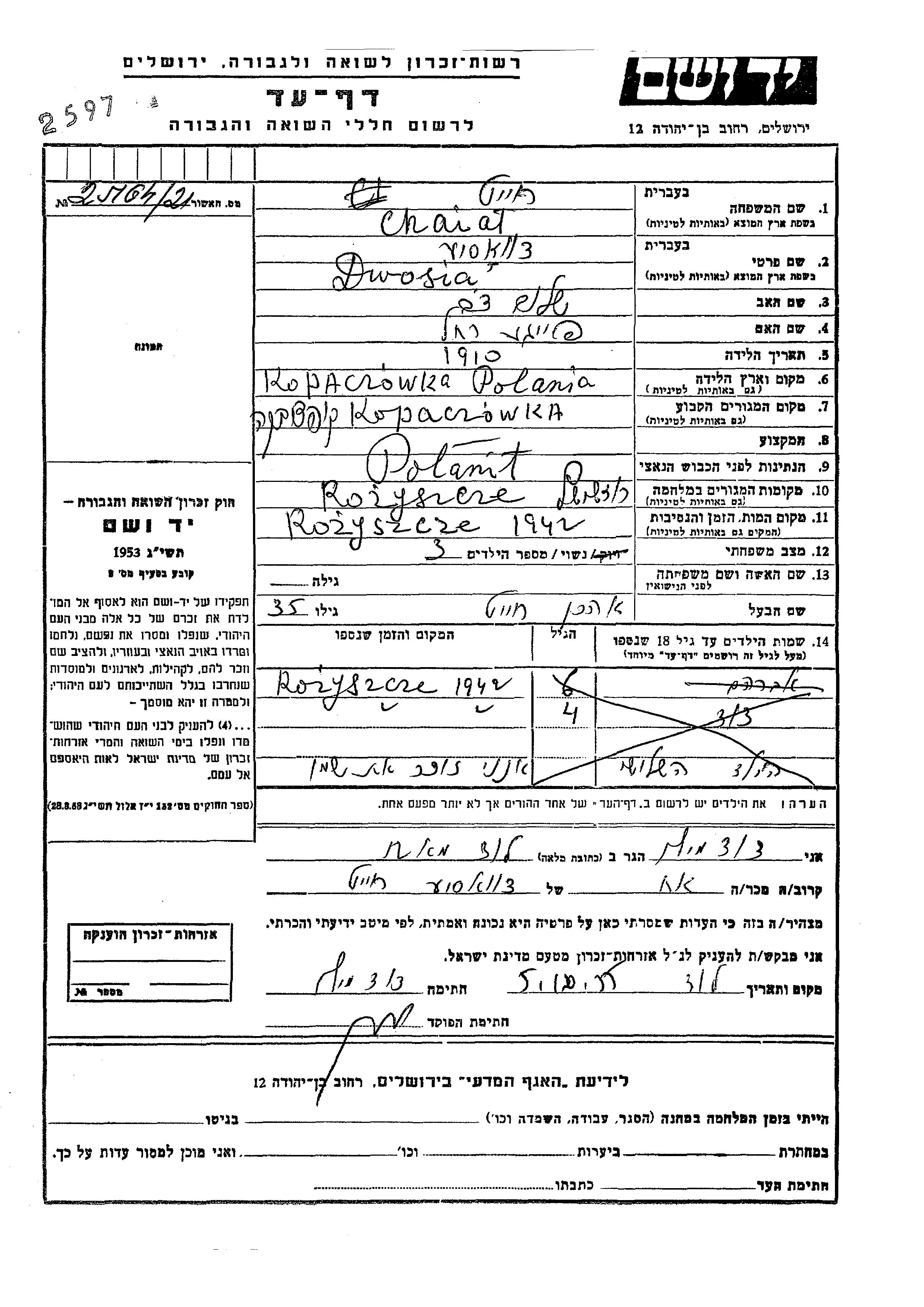 Chaiat Avraham Kopaczowka, Polen Gedenkblatt