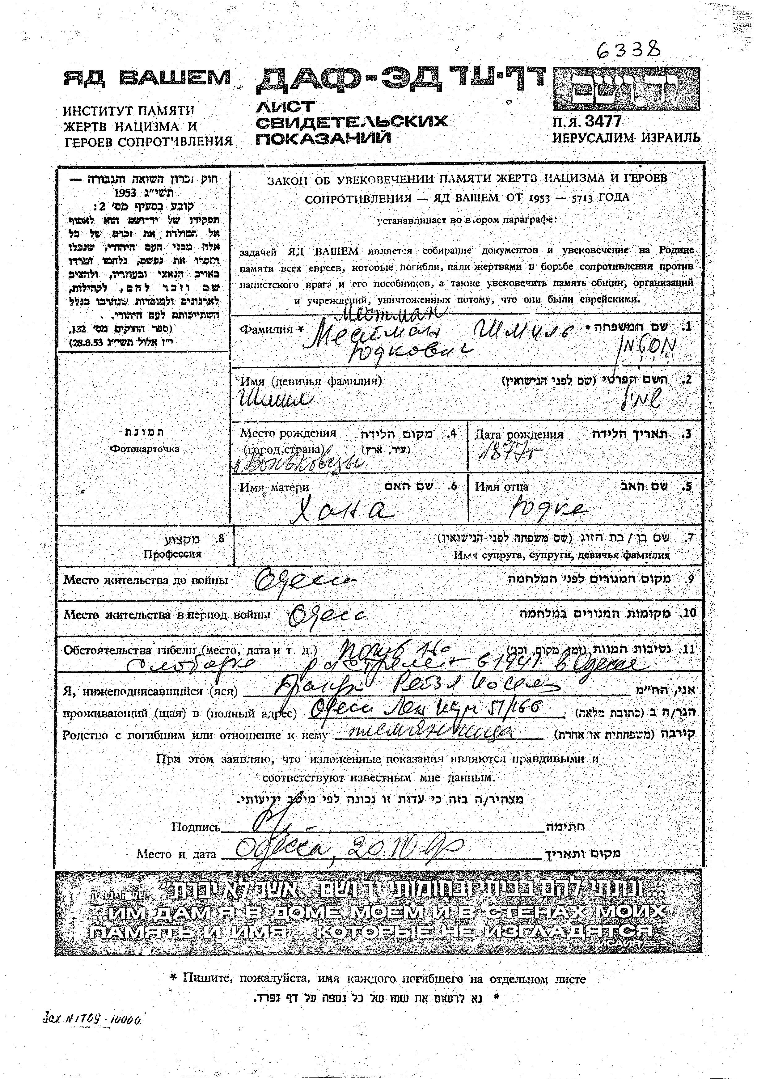 Mestman Shmil 1877 Odessa, Ukraine (UdSSR) Verfolgtenliste