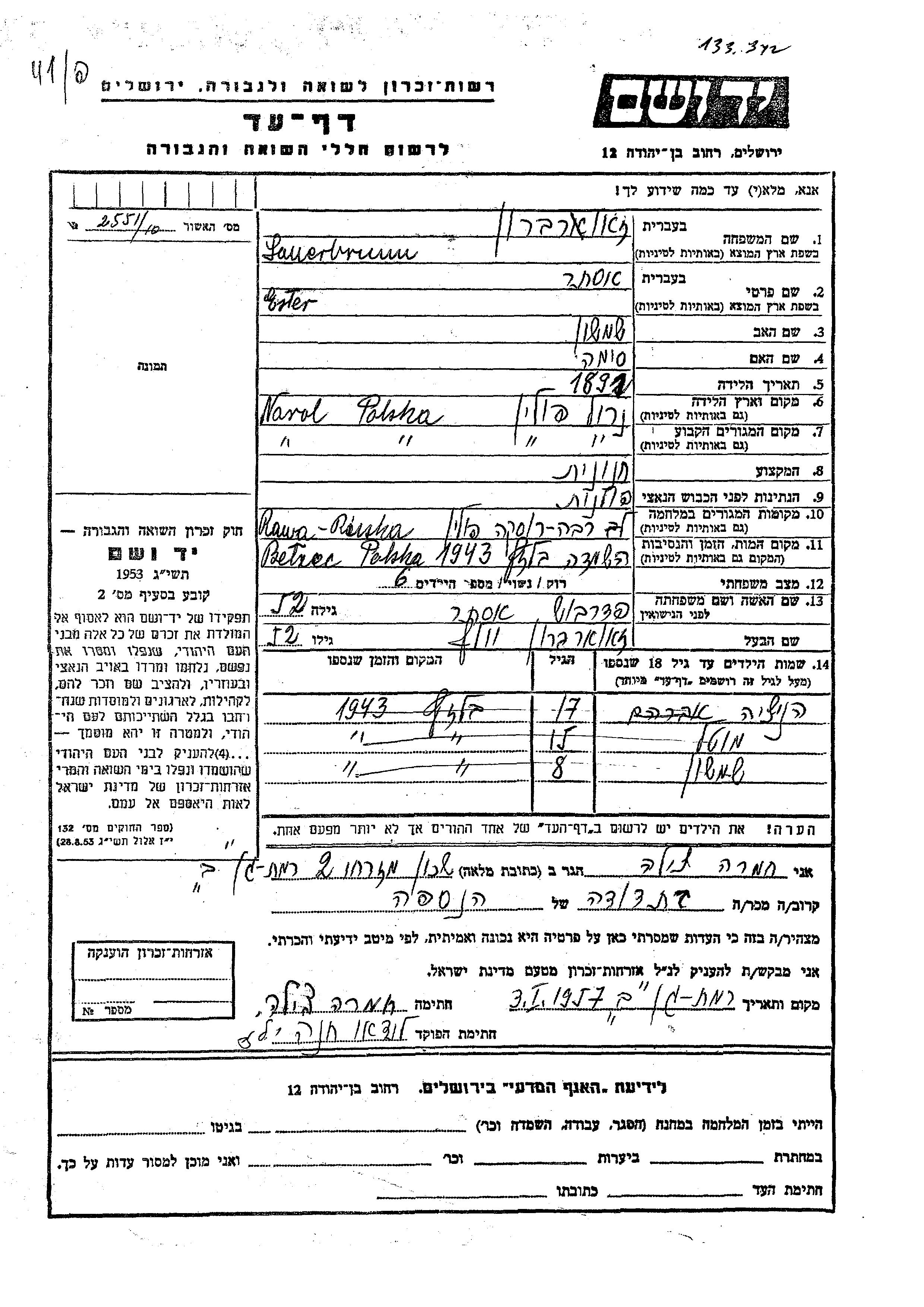 Zauerbrunn | Shimshon | Narol, Polen | Gedenkblatt | |