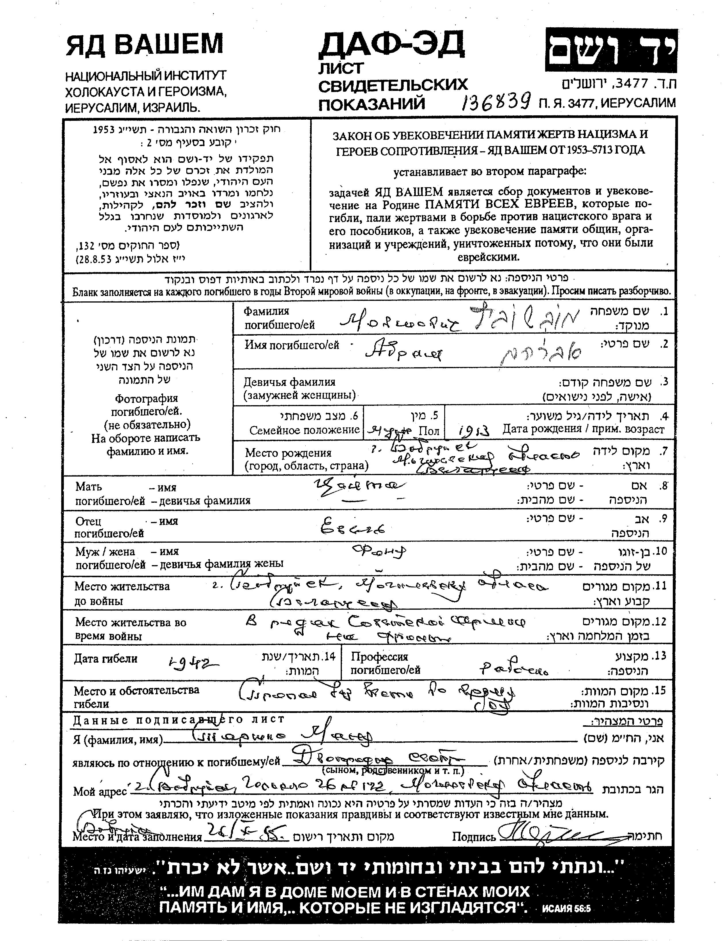 Movshovich Abram 1913 Bobruysk, Weißrussland (UdSSR) Verfolgtenliste
