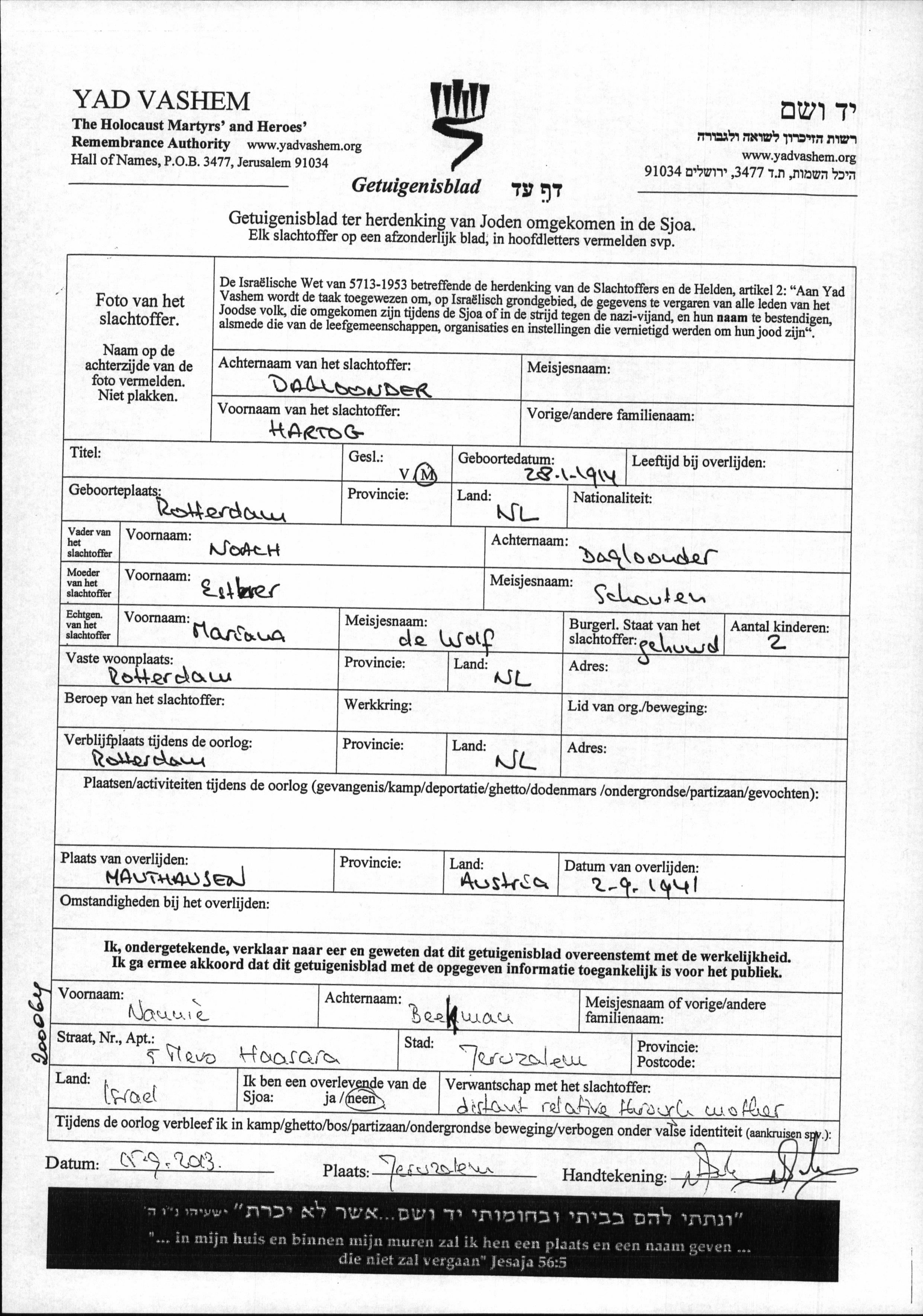 Hartog wurde in der Schoah ermordet. Todesort: Mauthausen, Österreich im Jahr 1941.