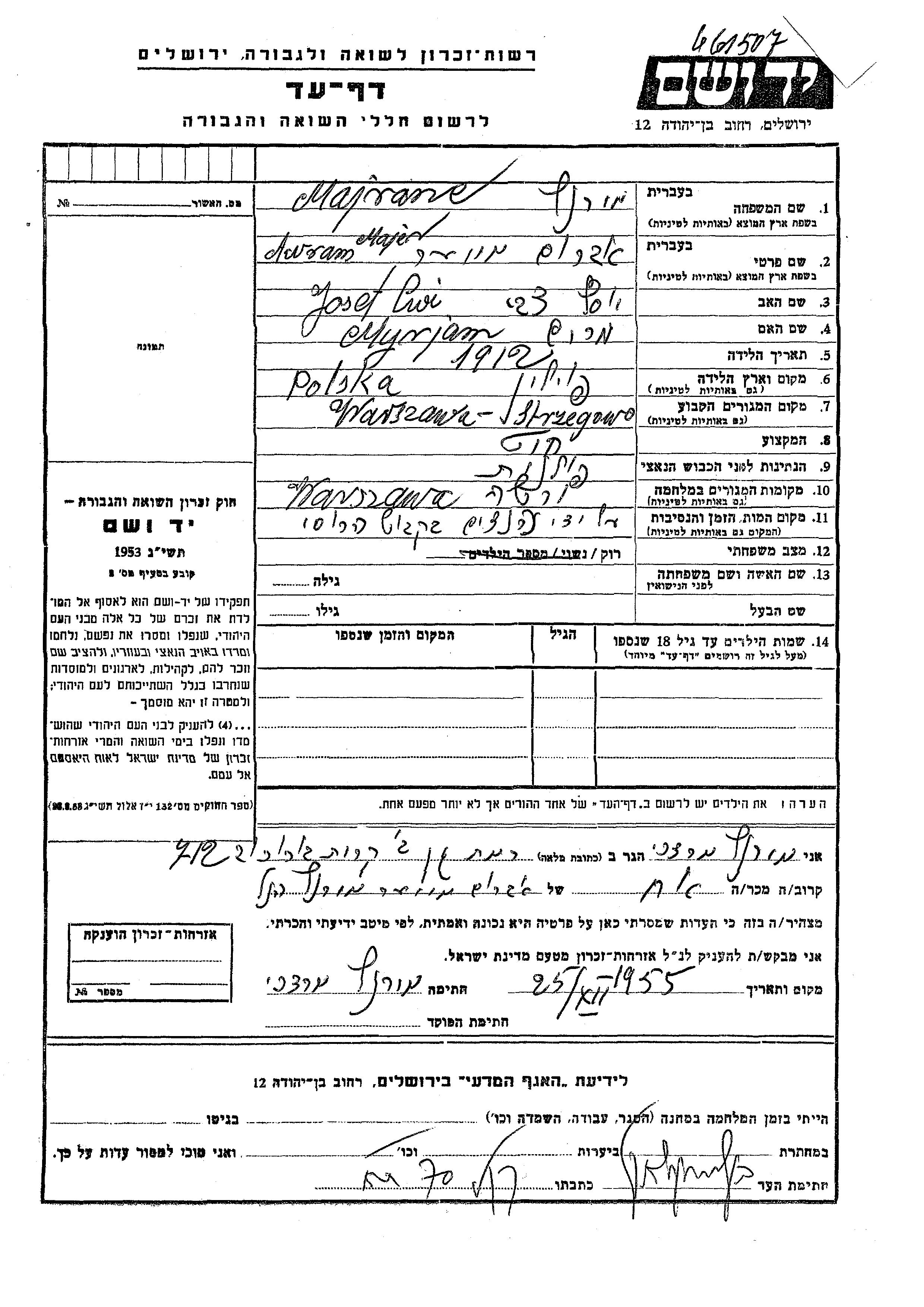 Awram Maier Mirantz wurde im Jahr 1912 in Polen geboren. Er war der Sohn von Yosef Lwi Tzvi und Maria. Er war Schneider und Ledig. Vor dem Zweiten Weltkrieg lebte er in Warsaw, Polen. Während des Krieges war er in Warsaw, Polen.