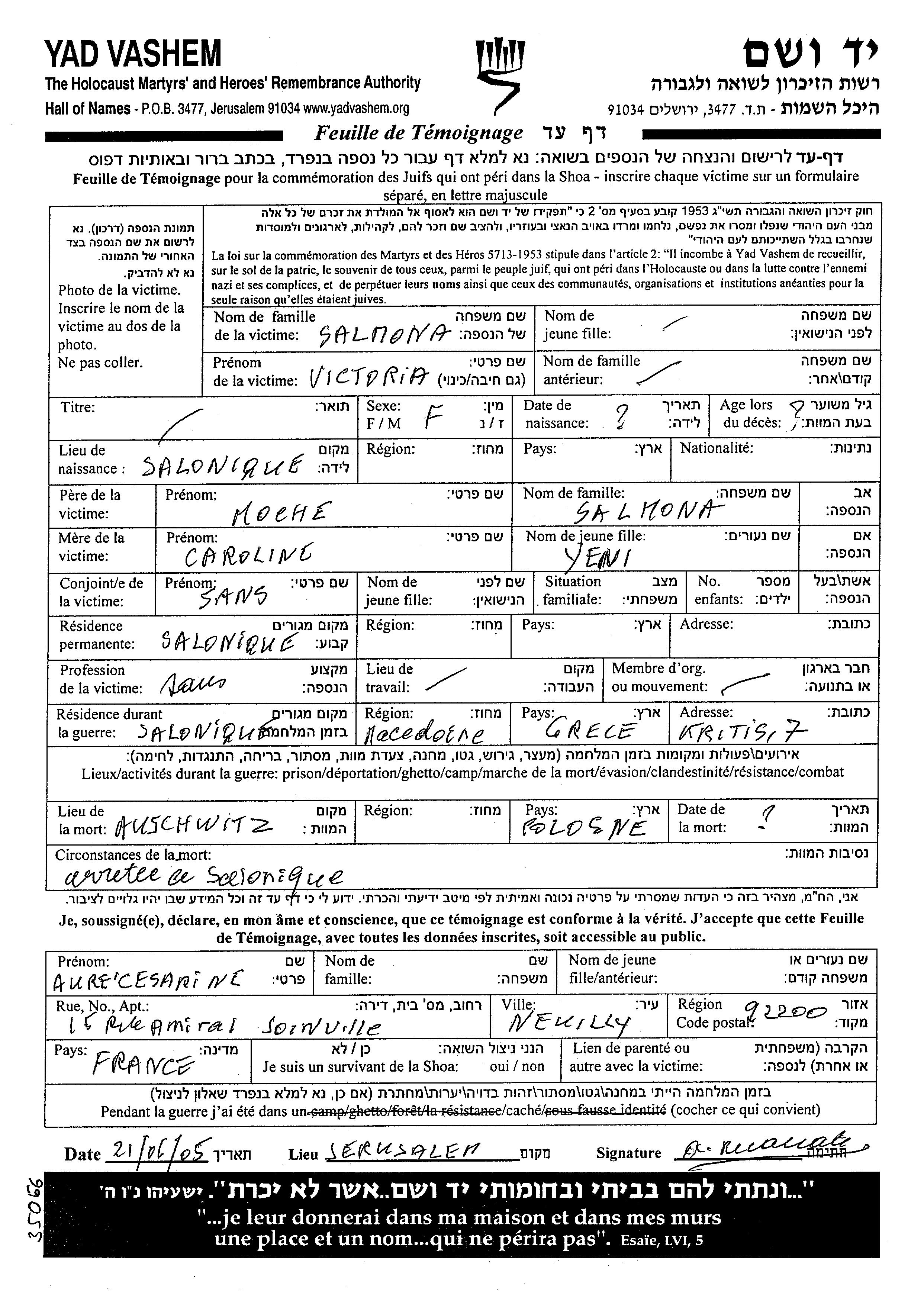 Salmona Viktoria Thessaloniki, Griechenland Liste von ermordeten Personen