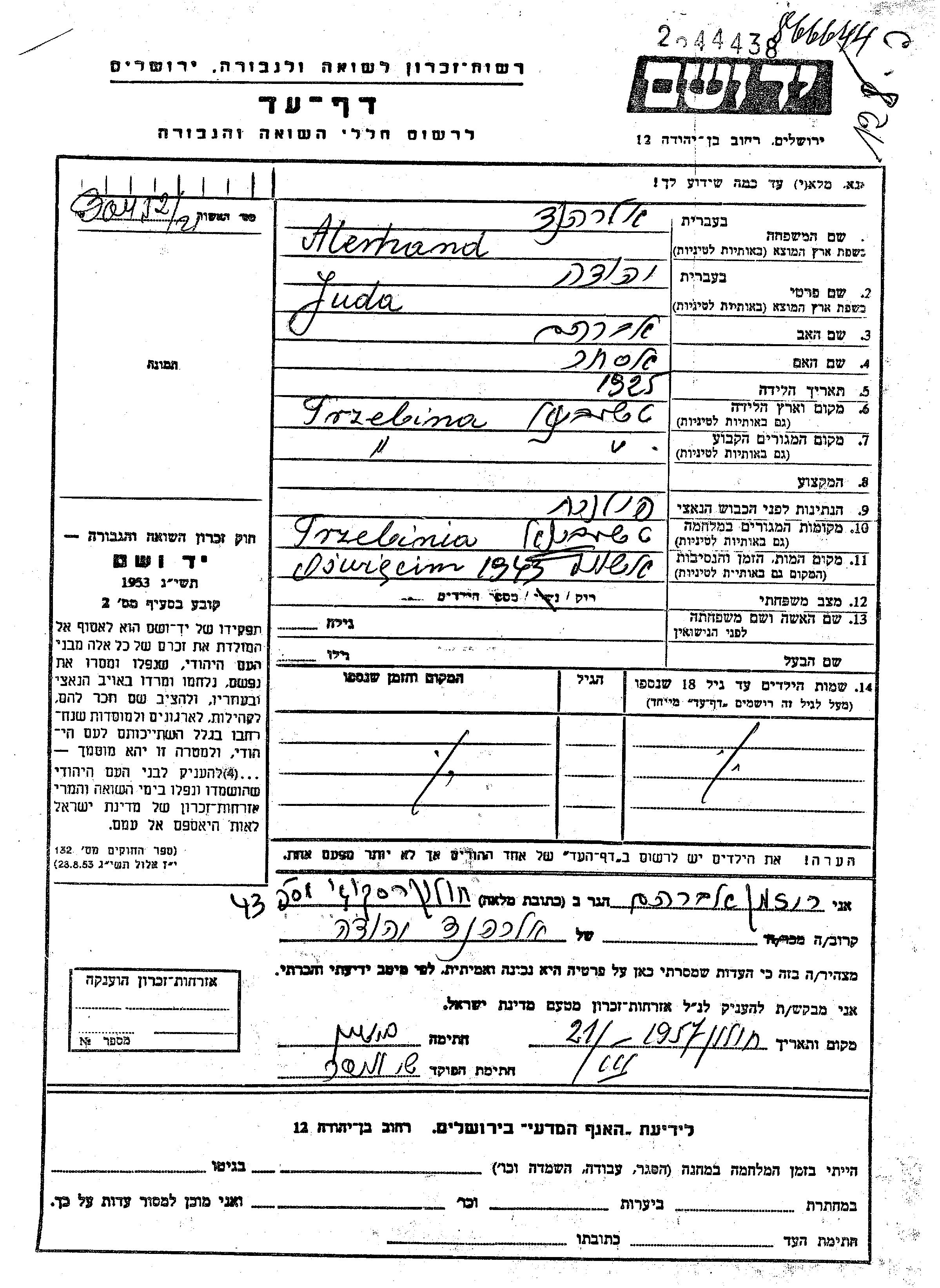 Juda Allerhand wurde im Jahr 1925 in Trzebinia, Polen geboren. Vor dem Zweiten Weltkrieg lebte er in Trzebinia, Polen.