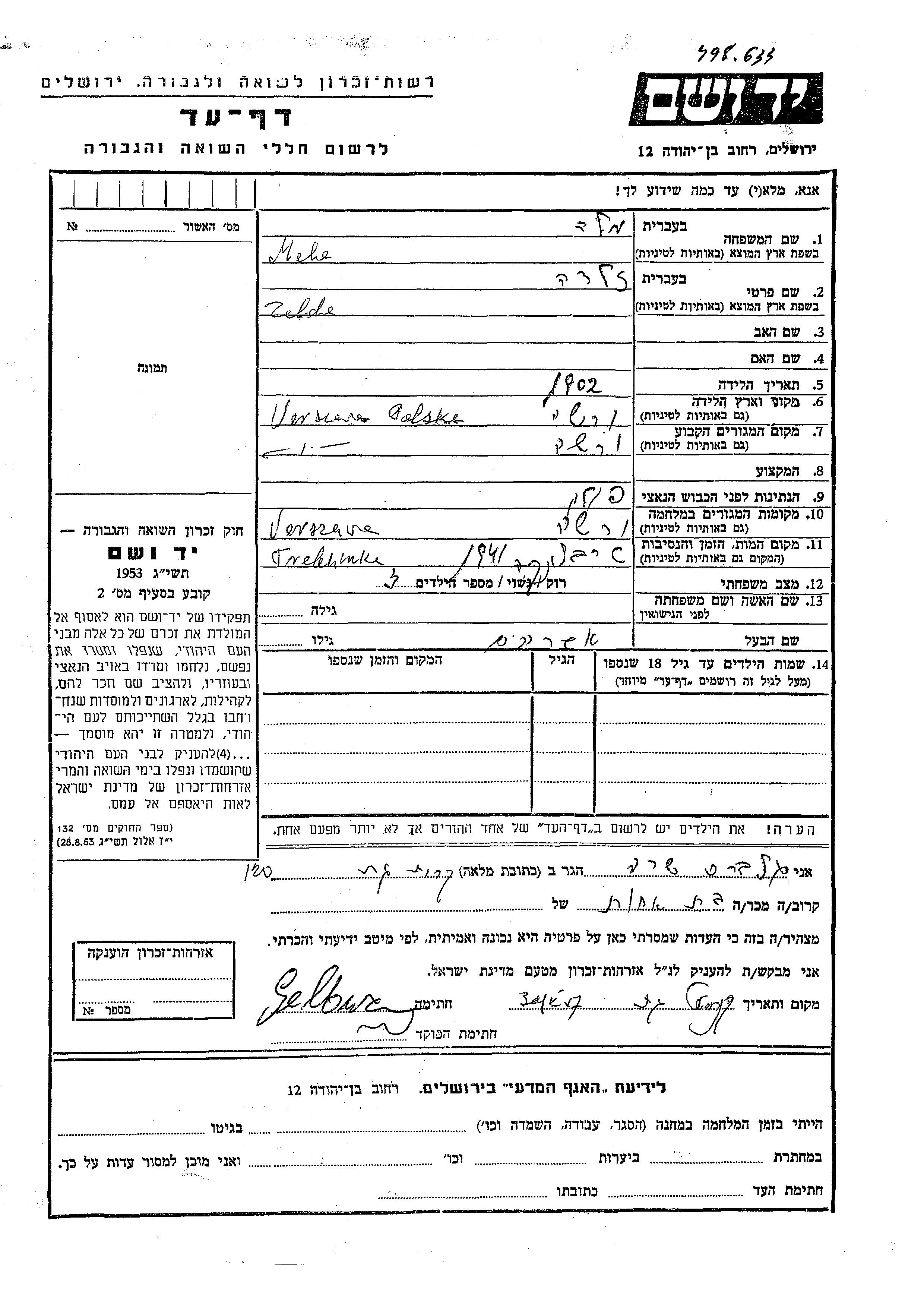 Zelde Male Mela wurde im Jahr 1902 in Warsaw, Polen geboren. Vor dem Zweiten Weltkrieg lebte sie in Warsaw, Polen.