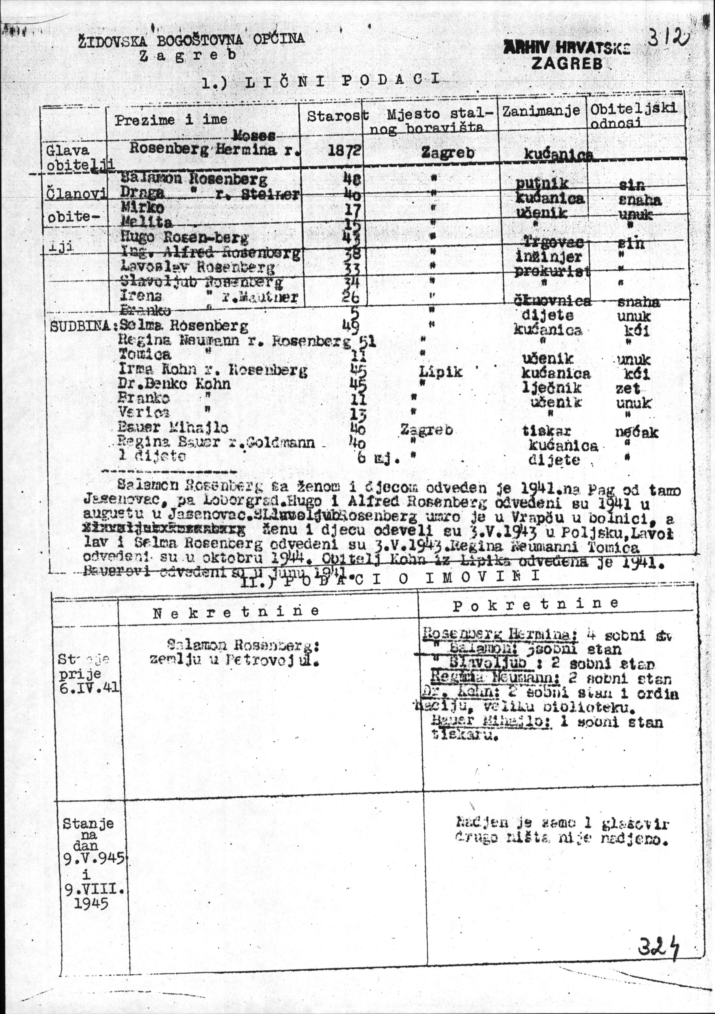 Rosenberg Melita Zagreb, Jugoslawien Verfolgtenliste