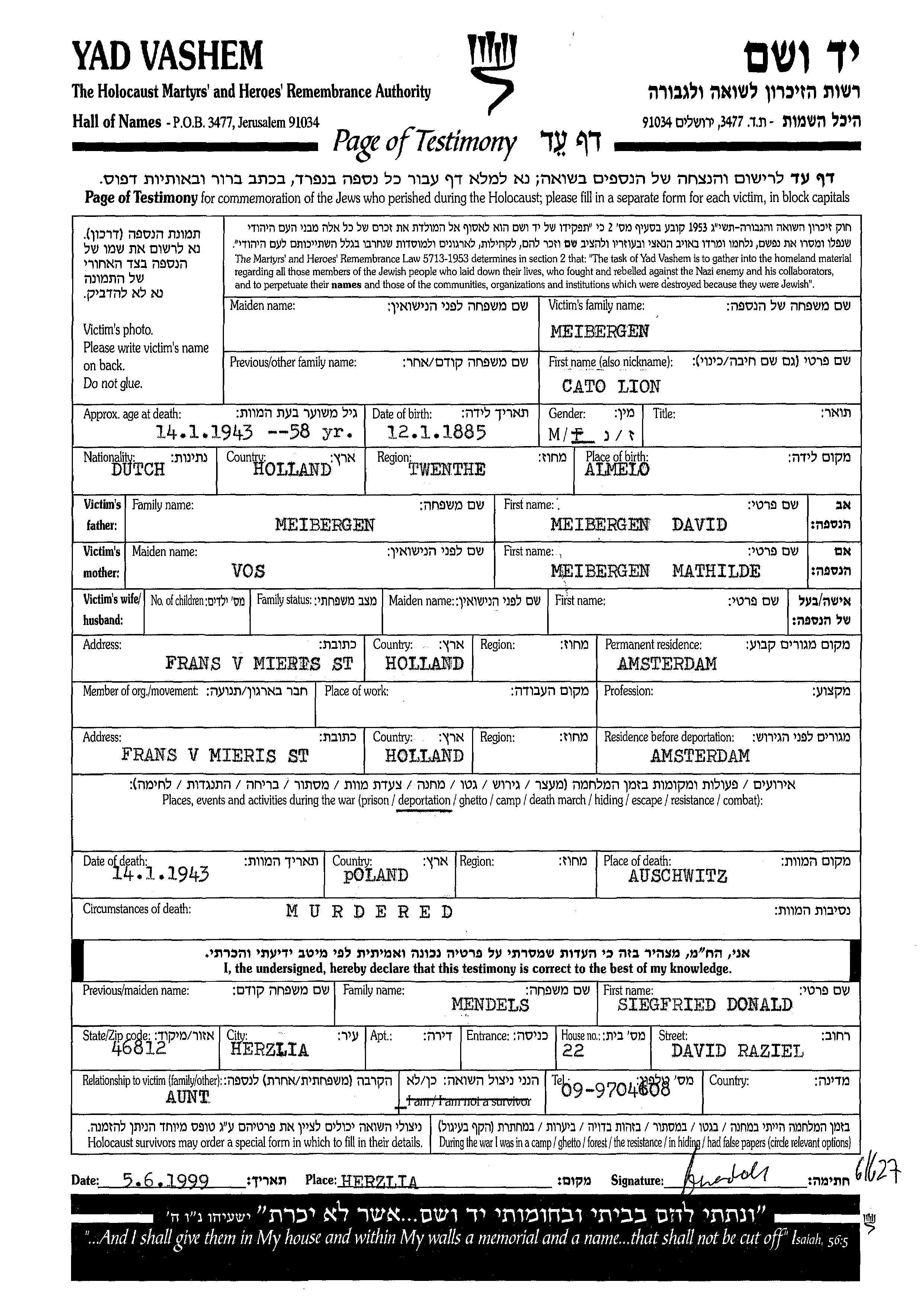 Meibergen | Cato Lion | 1885 | Almelo, Niederlande | Liste von ermordeten Juden aus Holland |