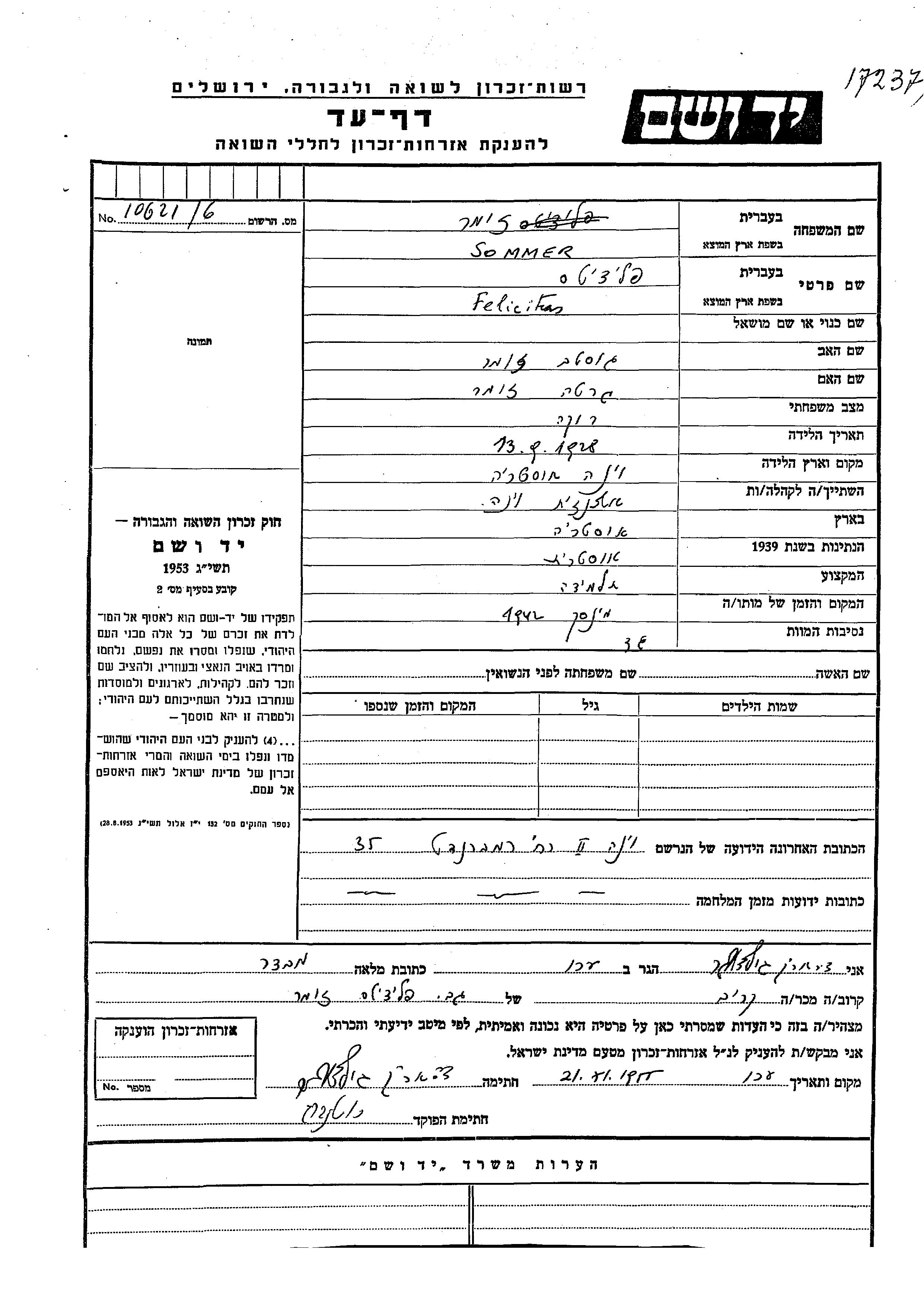 Felicitas Sommer wurde im Jahr 1928 in Wien, Österreich geboren. Sie war Schüler/-in. Vor dem Zweiten Weltkrieg lebte sie in Wien, Österreich.